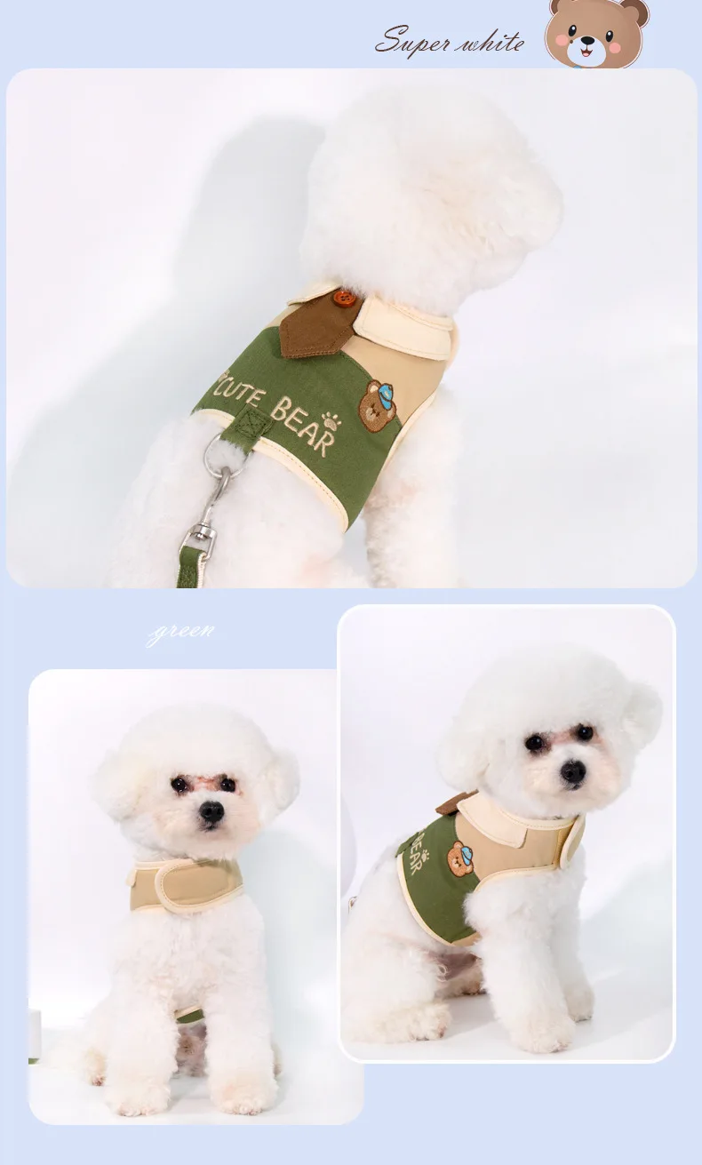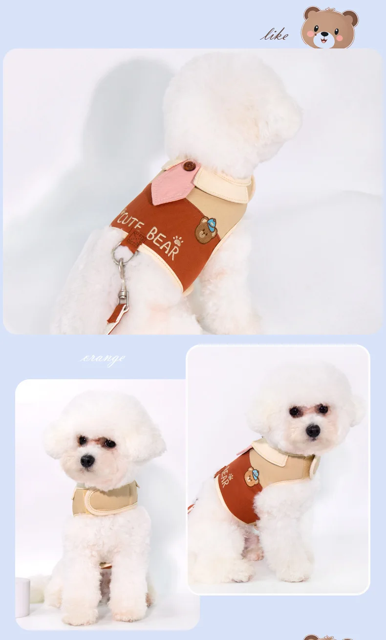 Correa de pecho para perro pequeño, chaleco estilo osito, conjunto de arnés y Correa, accesorios para cachorros