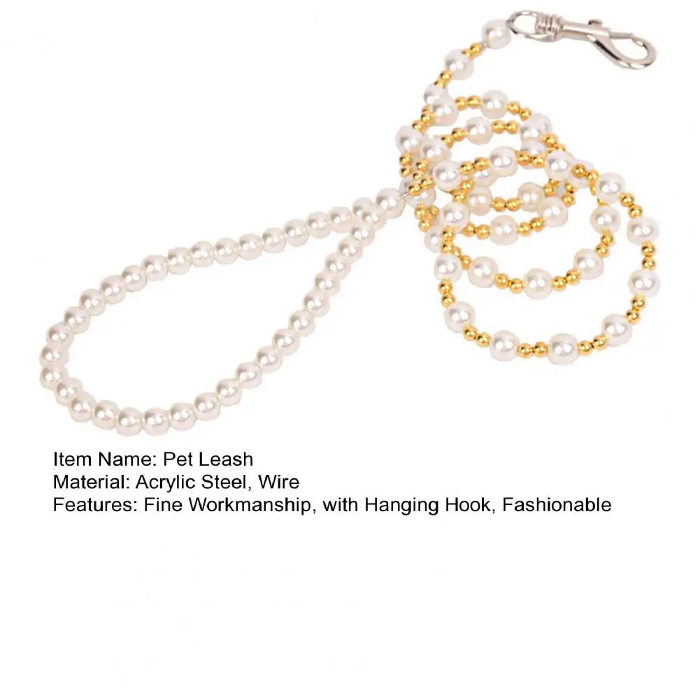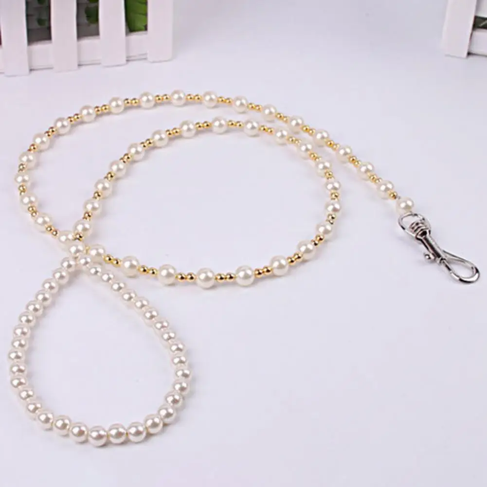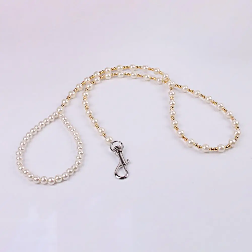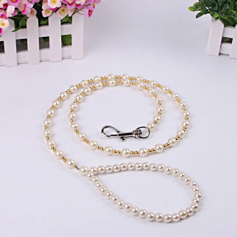 Correa de arnés para perro con cuentas de perlas de lujo con estilo, mano de obra fina con gancho colgante, correa para mascotas con cuentas a la moda