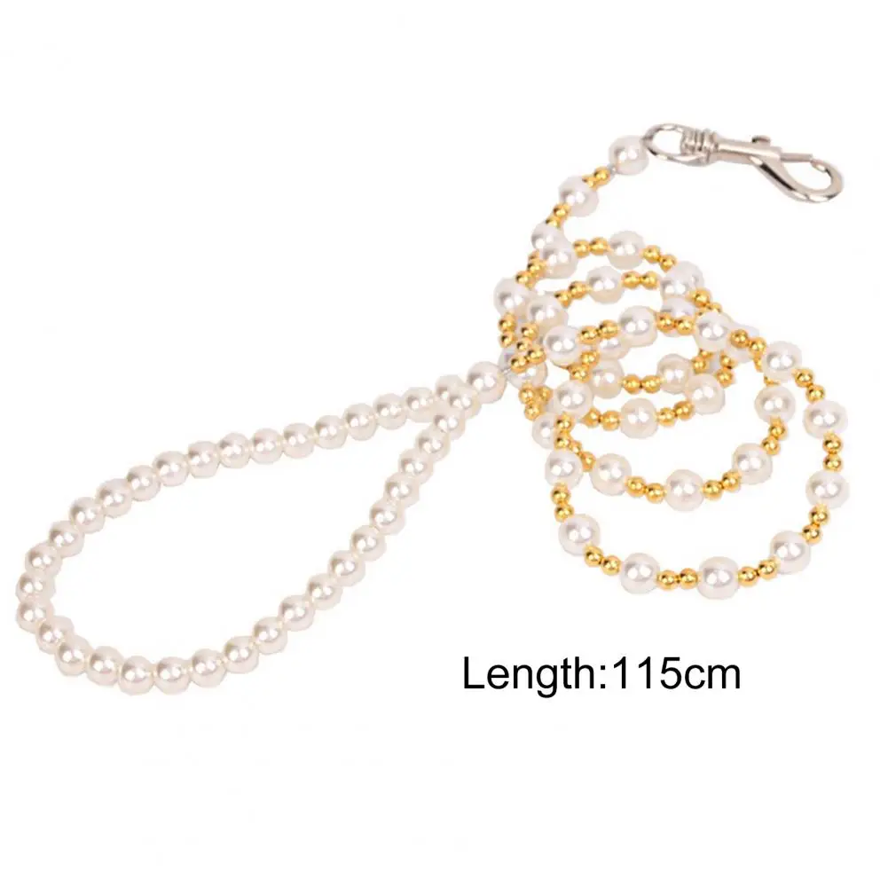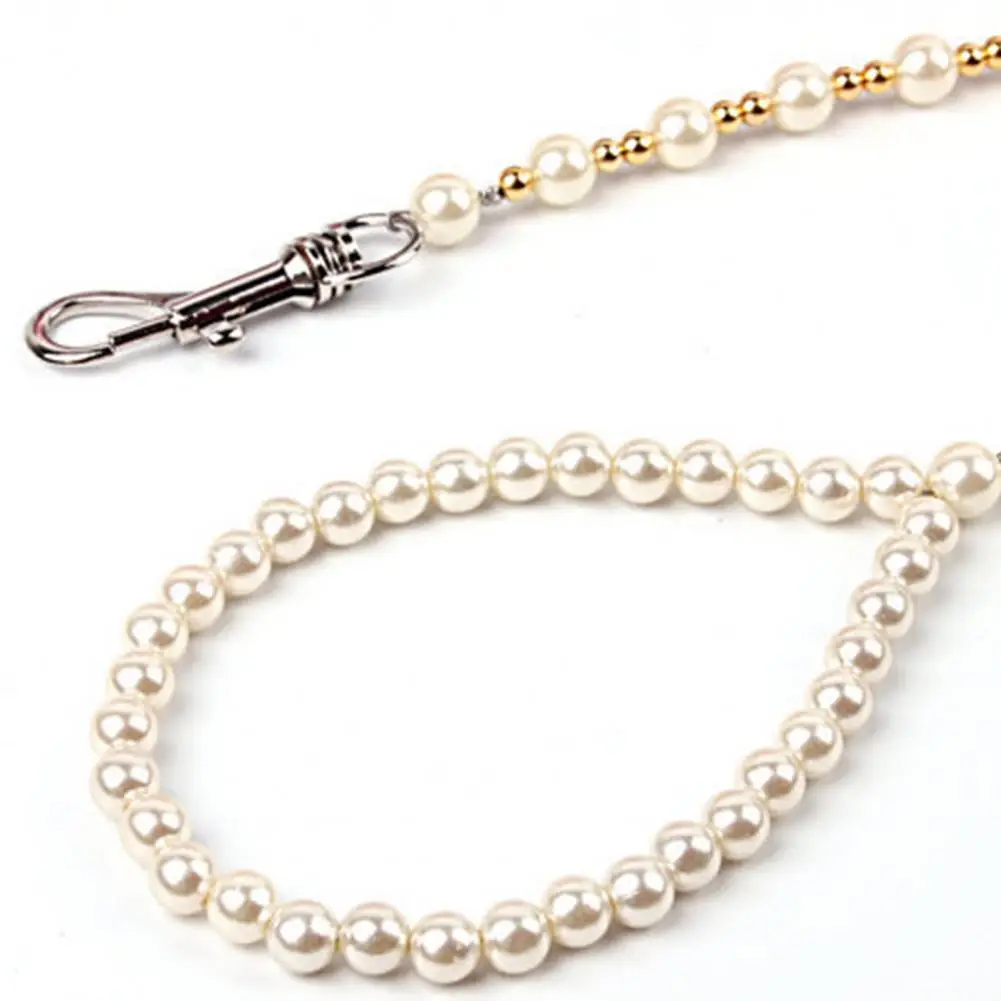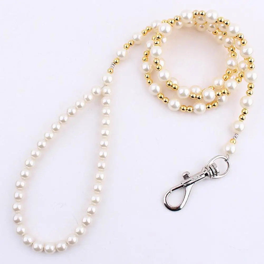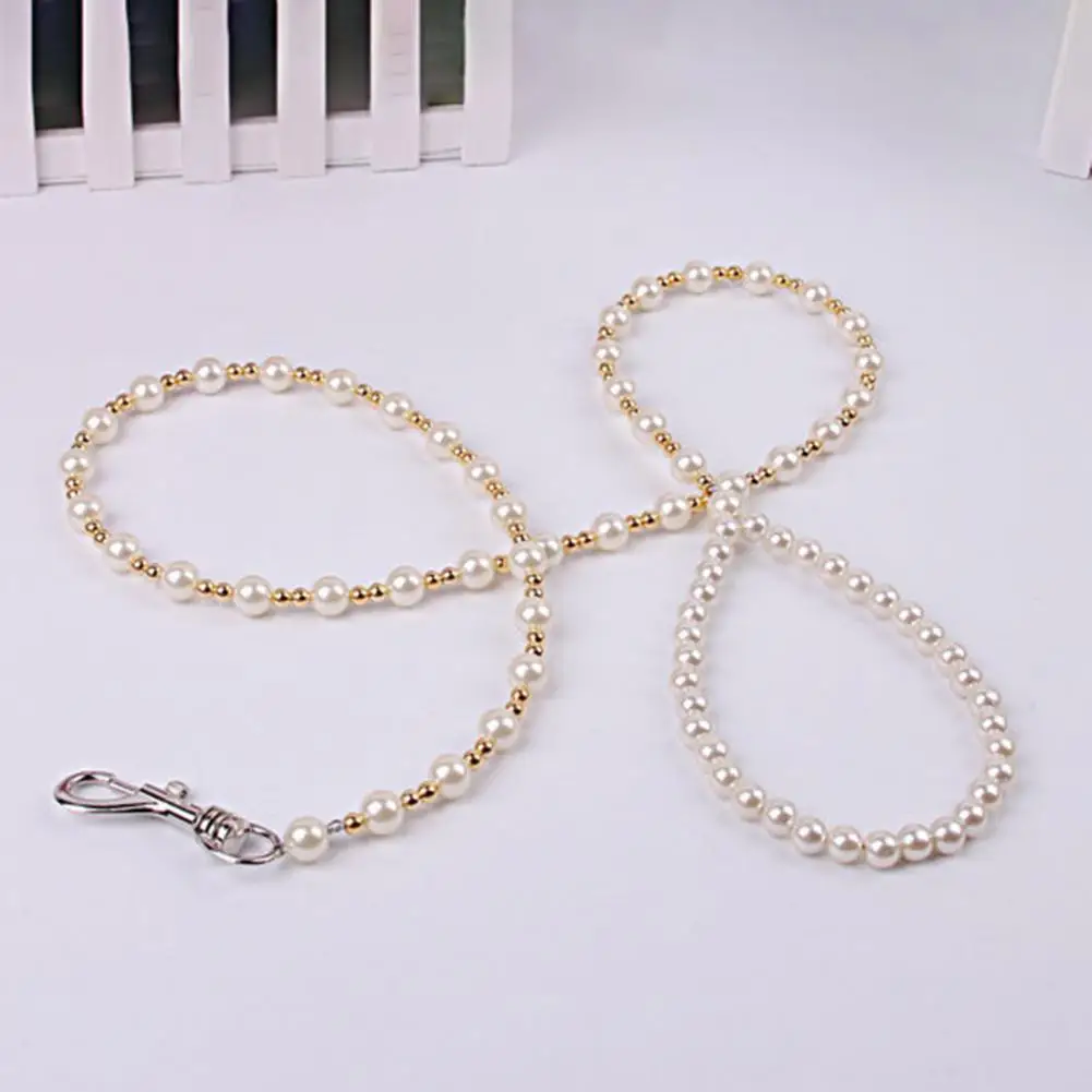 Correa de arnés para perro con cuentas de perlas de lujo con estilo, mano de obra fina con gancho colgante, correa para mascotas con cuentas a la moda