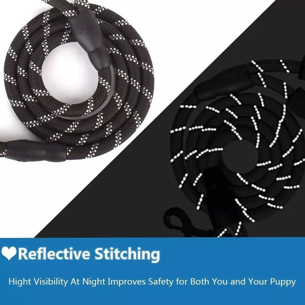 Correa para perro de 2M con mango acolchado suave, cuerda altamente reflectante para caminar de noche, adecuada para perros pequeños, medianos y grandes