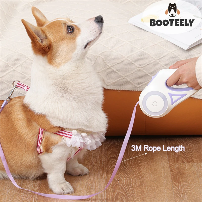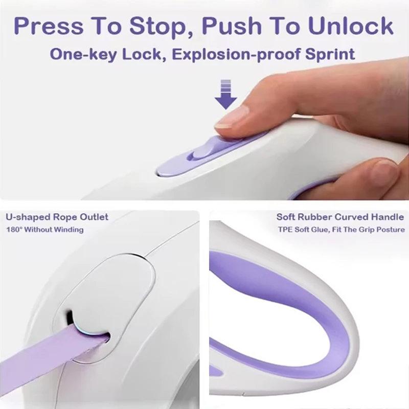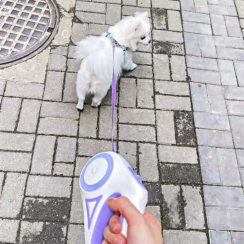 3.Retracción libre de una longitud de cuerda de 3 metros, control libremente, bloqueo con llave, sprint de tormenta, no tiene que preocuparse de que el perro se escurra.