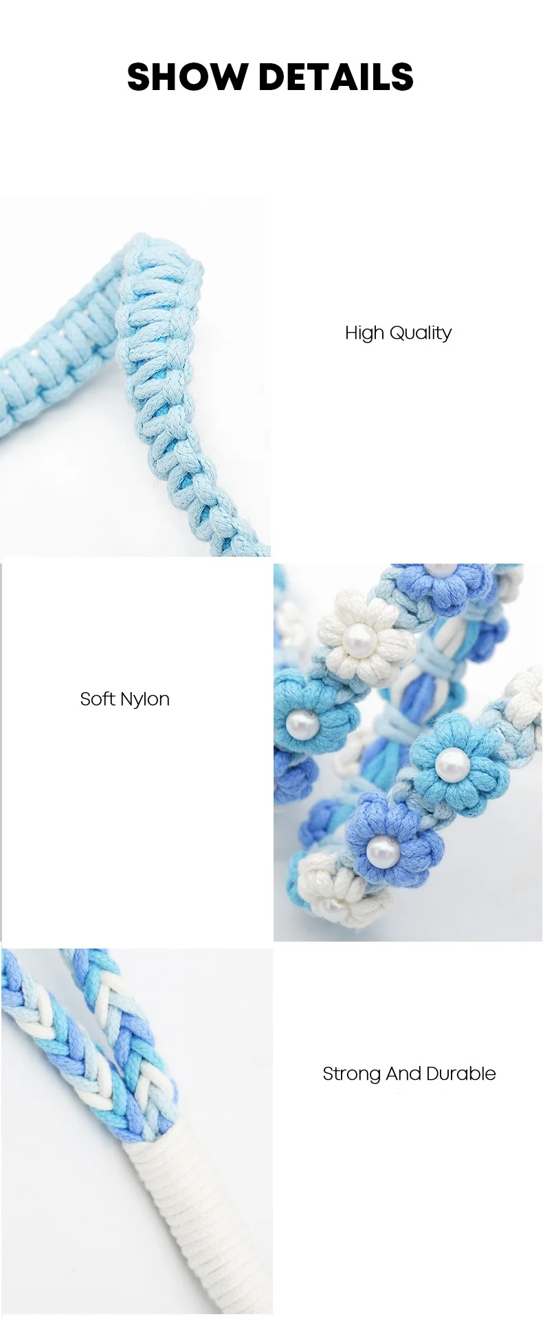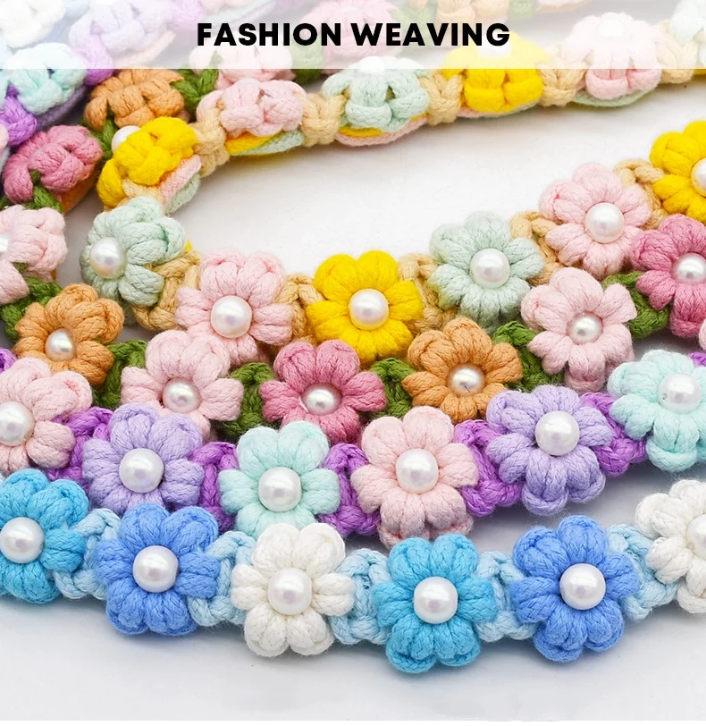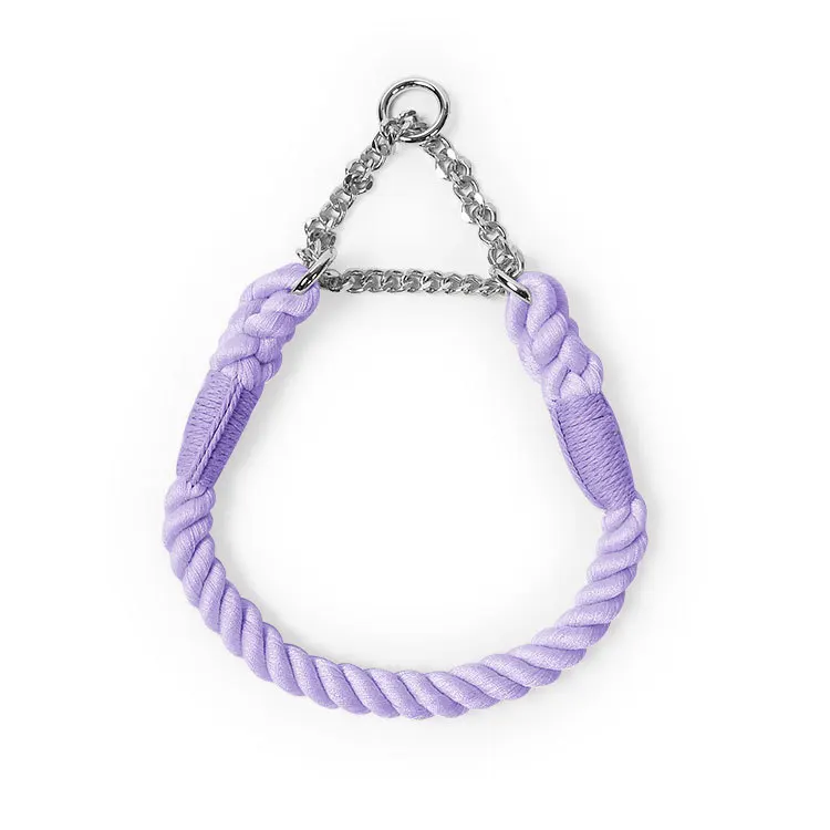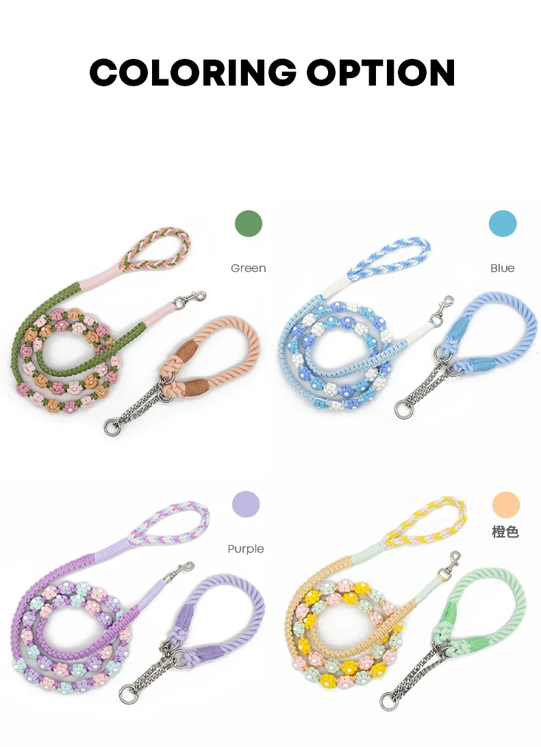 Correa de perro de algodón trenzada hecha a mano con mango floral Collar tejido duradero y elegante para perros Correa para mascotas de color arcoíris con collar