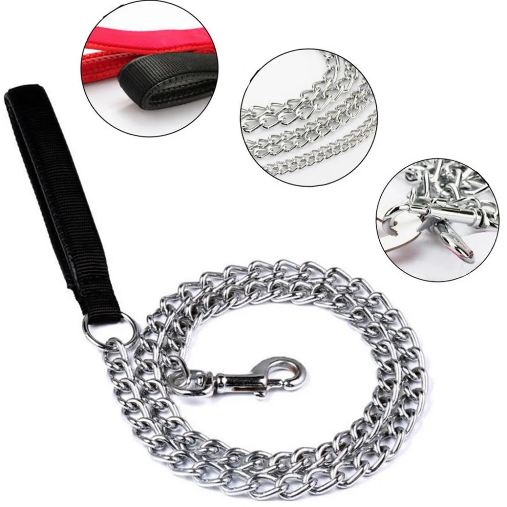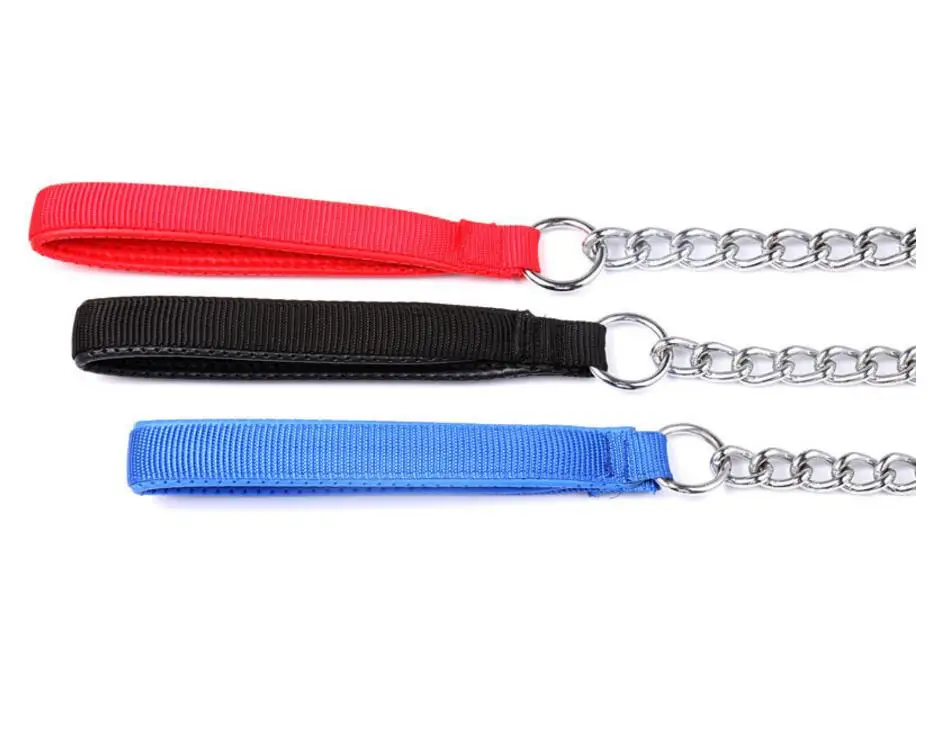 Correa para perros de alta calidad, mango de nailon de doble espesor, correa acolchada de forma suave, cadena de hierro fuerte, correas para perros grandes y pequeños