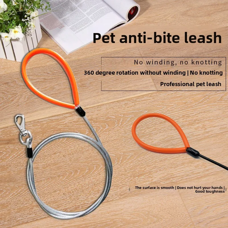 Correa para perro, cadena de alambre de acero para perros, correa antimordida para caminar, cuerda de tracción de 200cm de largo, correas para perros a prueba de masticar, accesorios para mascotas