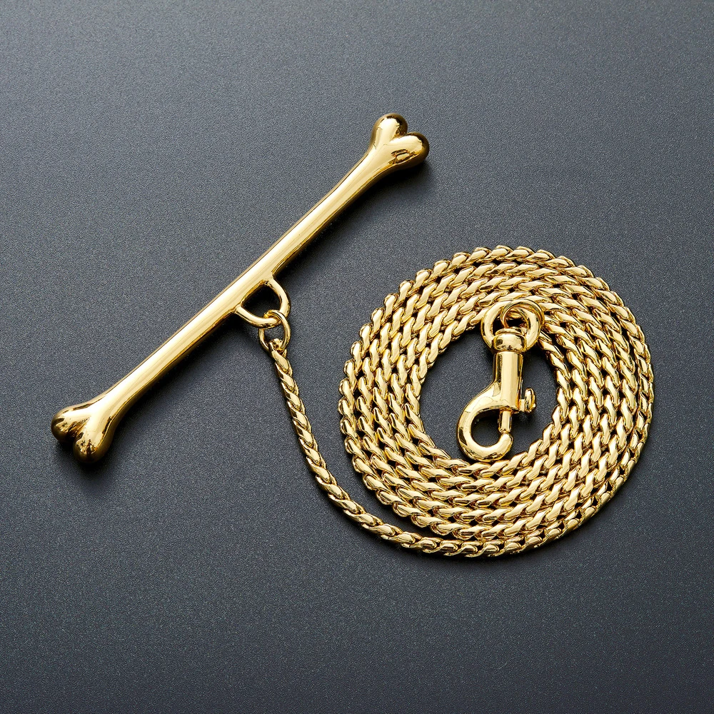 Correa para perro de cadena cubana de acero inoxidable, cadena de cuerda para perro de oro de 18 quilates a prueba de masticar fuerte de 3 pies con mango de hueso para perros pequeños, medianos y grandes