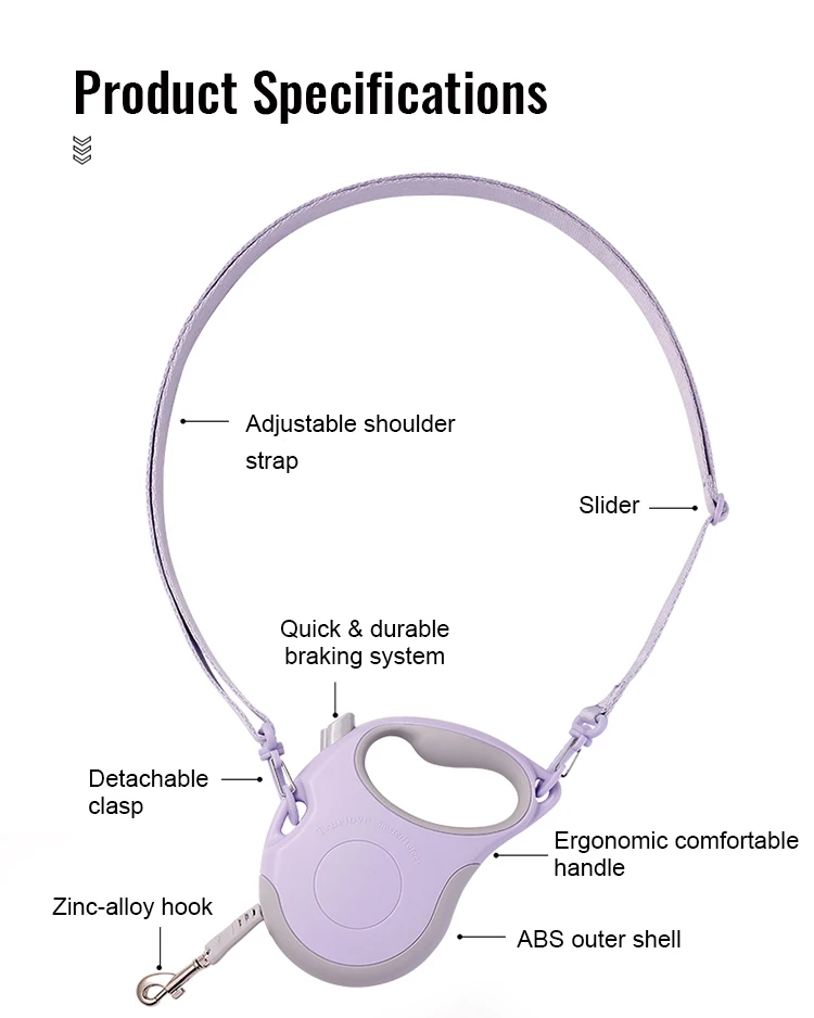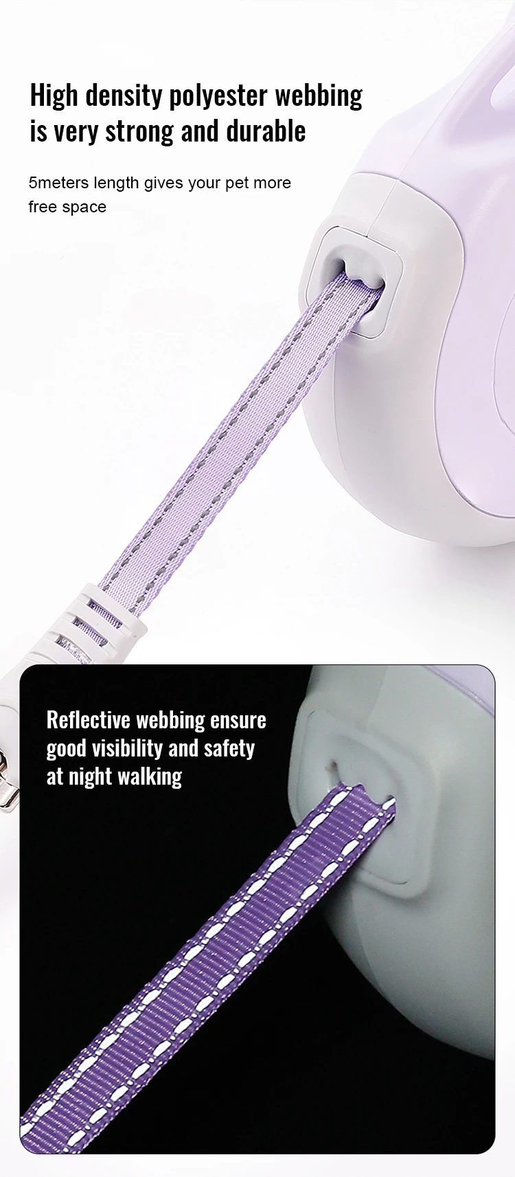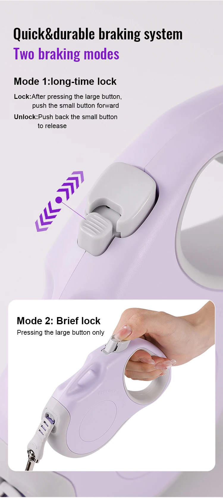 Correa para perro, cinta de nailon fuerte retráctil sin enredos, bloqueo de pausa de freno con una sola mano, propietarios de perros y gatos, confiable TLL5001