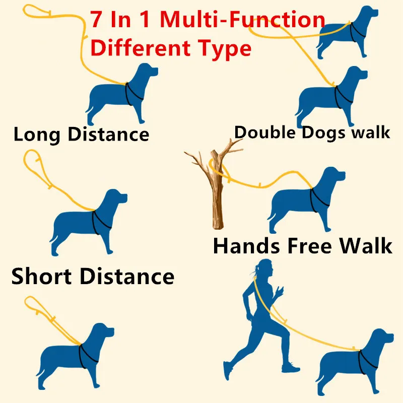 Correa para perro, correa para perro manos libres, correas dobles multifuncionales para 2 perros que caminan, correas reflectantes para perros, cuerda de cadena para correr para mascotas