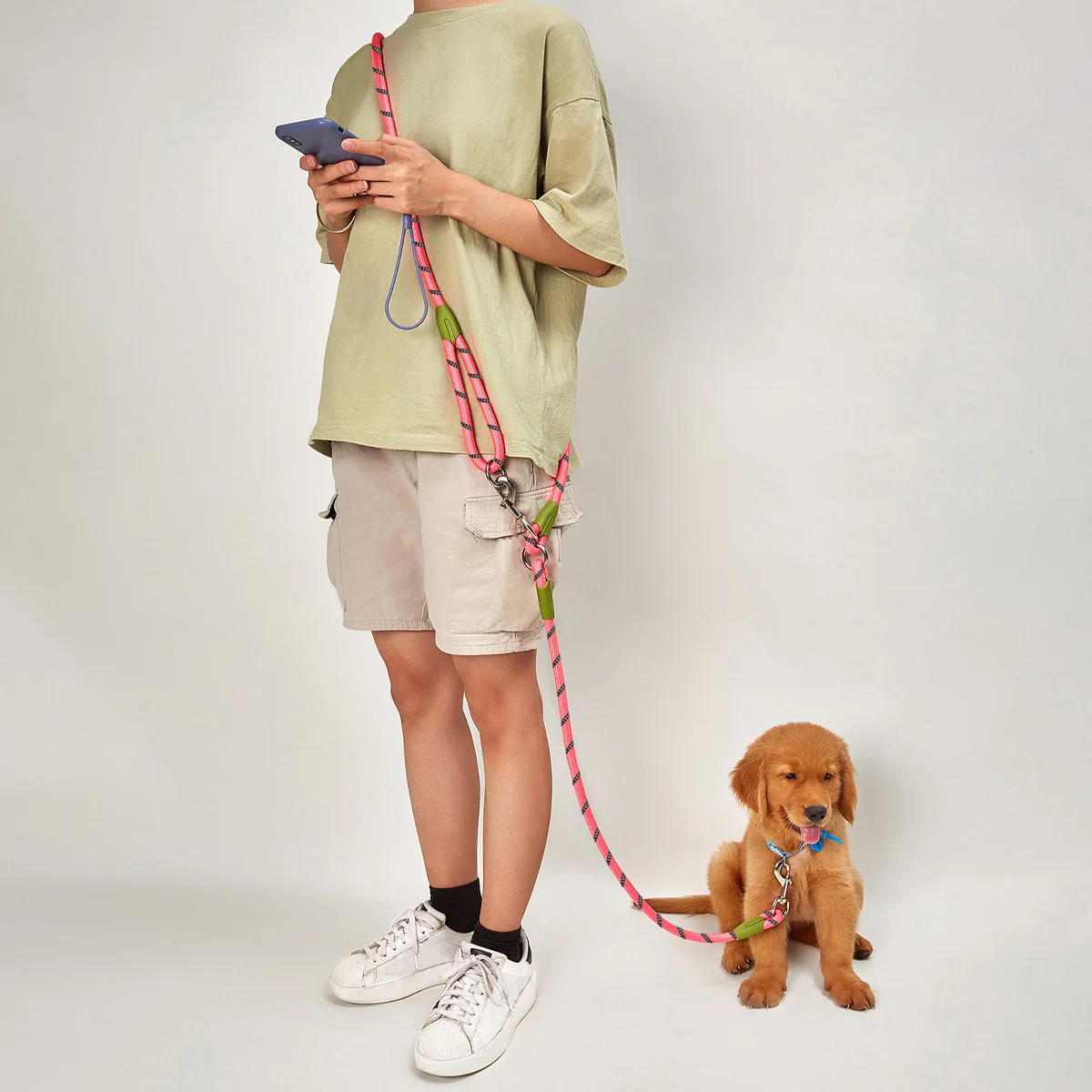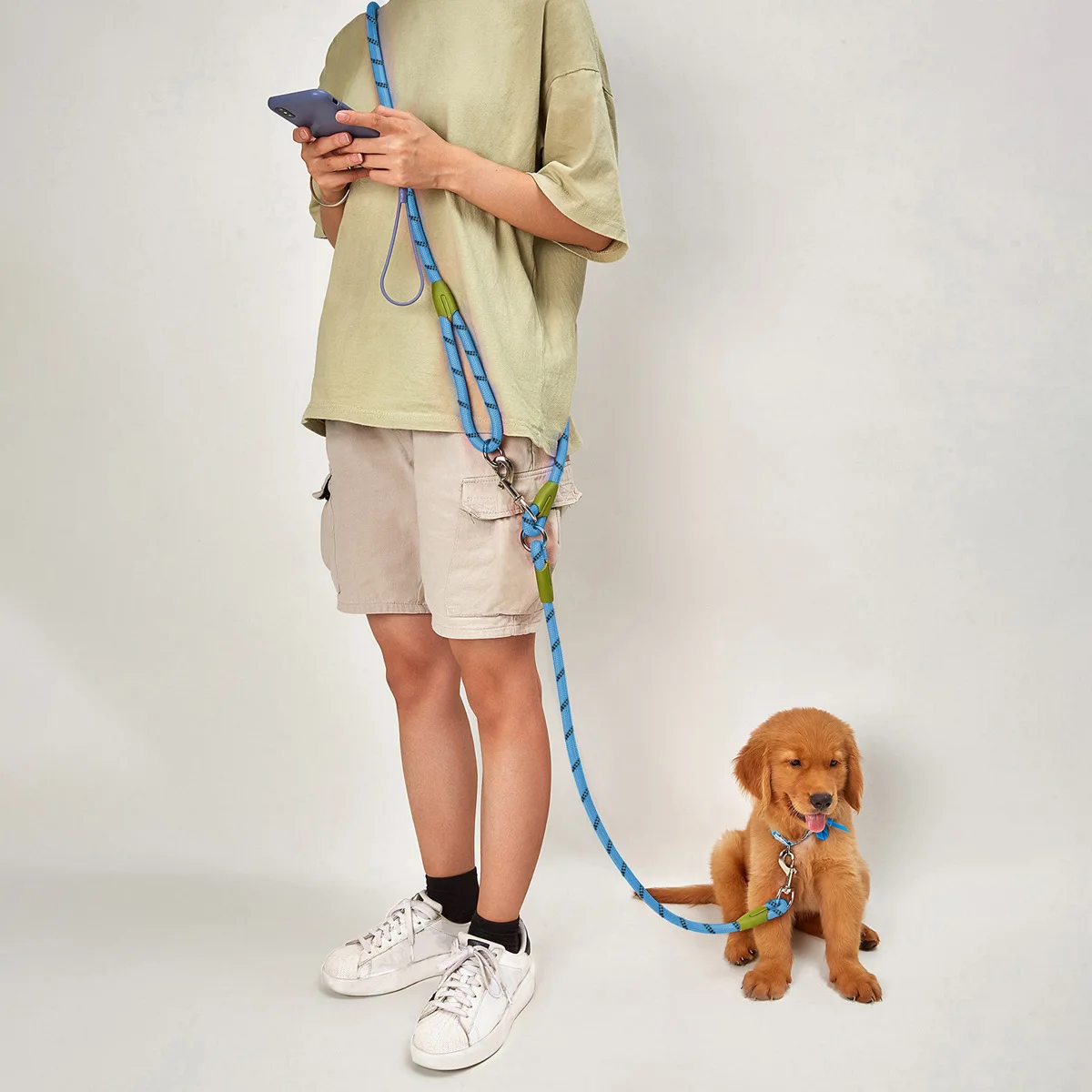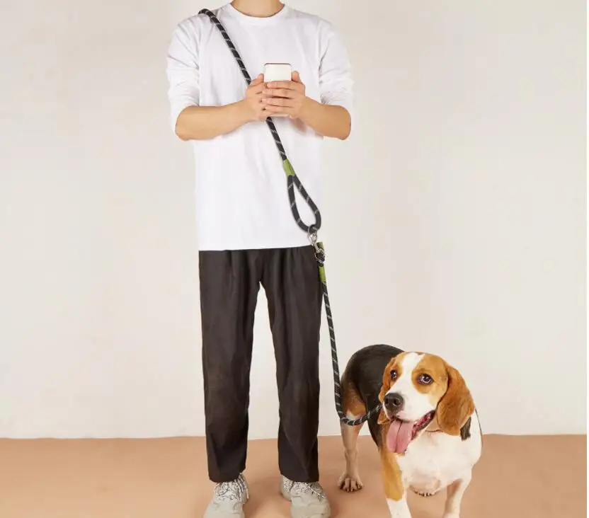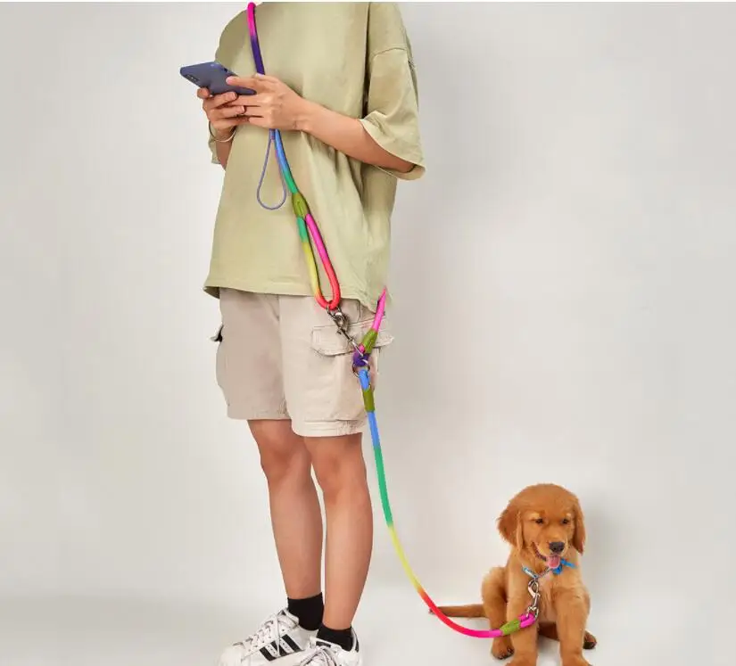 Bonita correa y, sobre todo, correa fuerte de 1,2cm de diámetro, que viene bien para perros grandes. Tiene doble enganche fuerte que permite colocar parte de la parte alrededor del cuerpo y así llevar las manos libres. Llegó en cinco días. Muy recomendable para perros grandes
