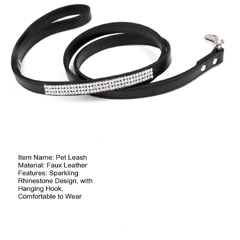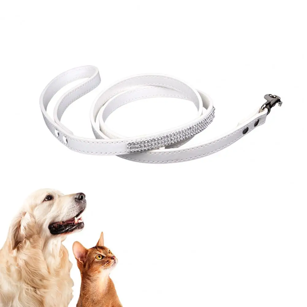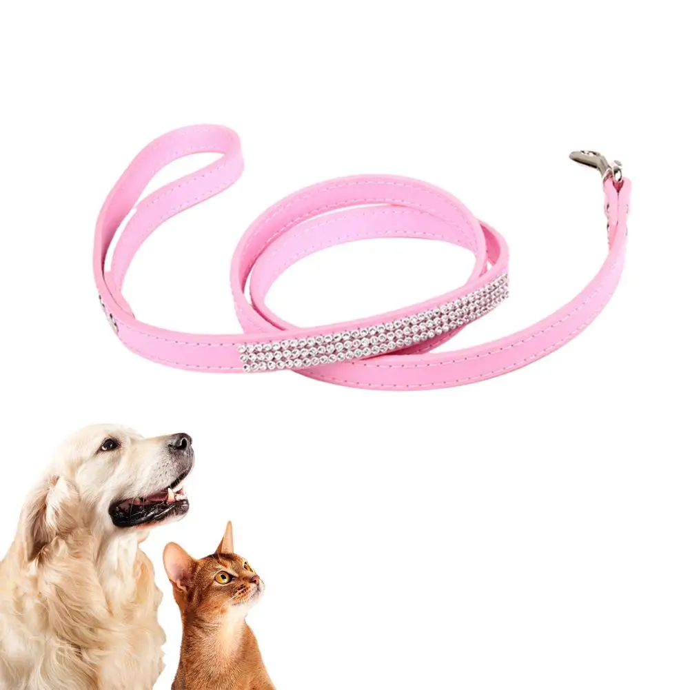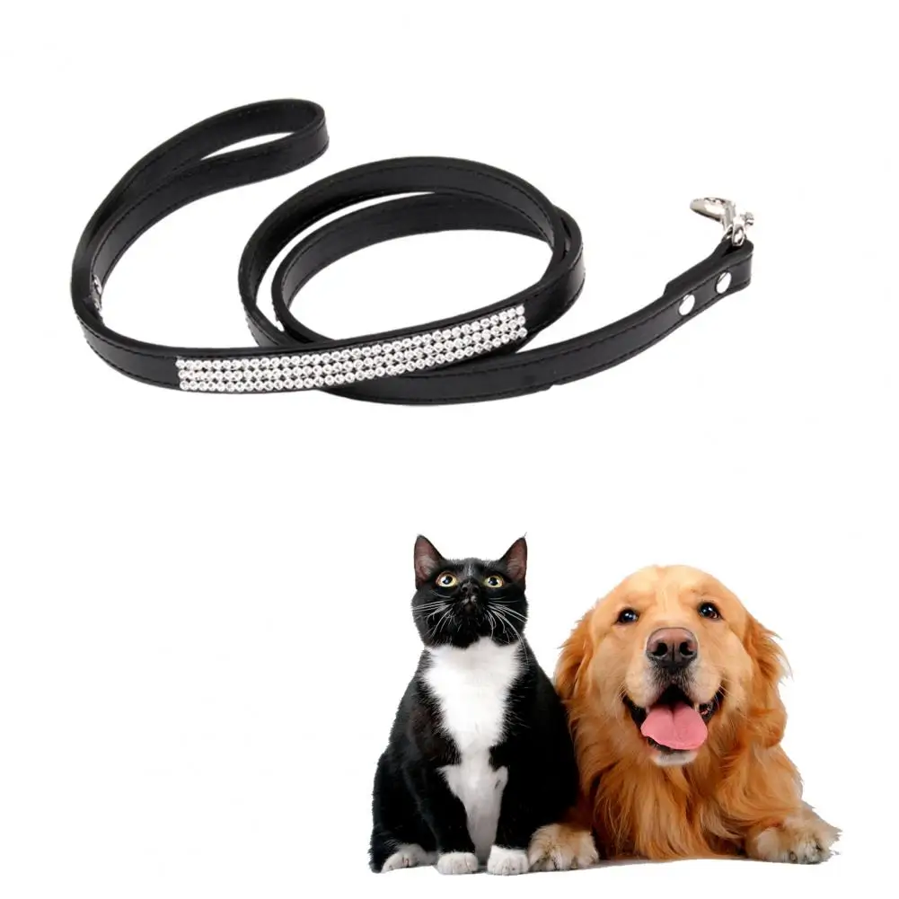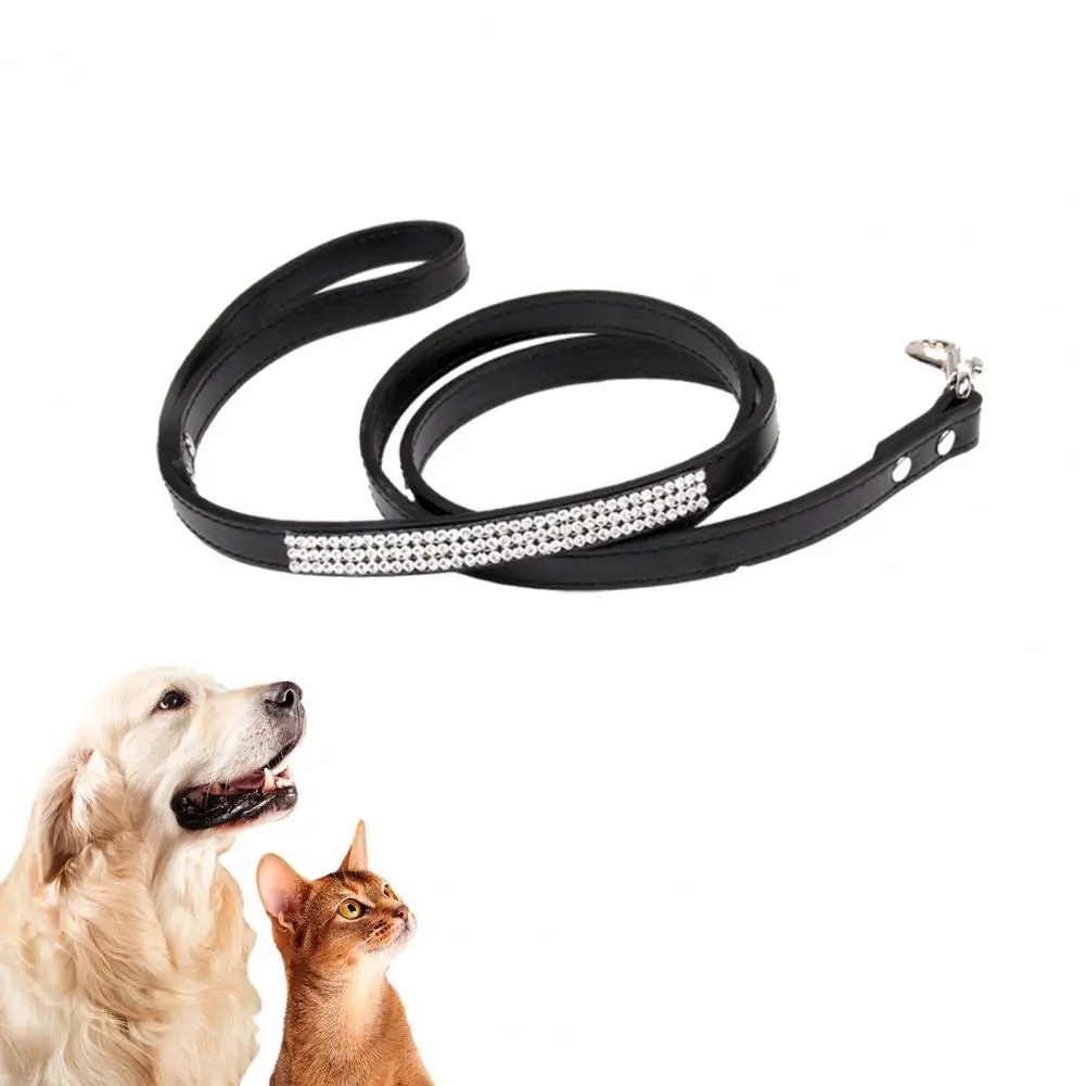 Correa para perros con diseño de diamantes de imitación brillantes y gancho para colgar Correa de cuero artificial cómoda de llevar