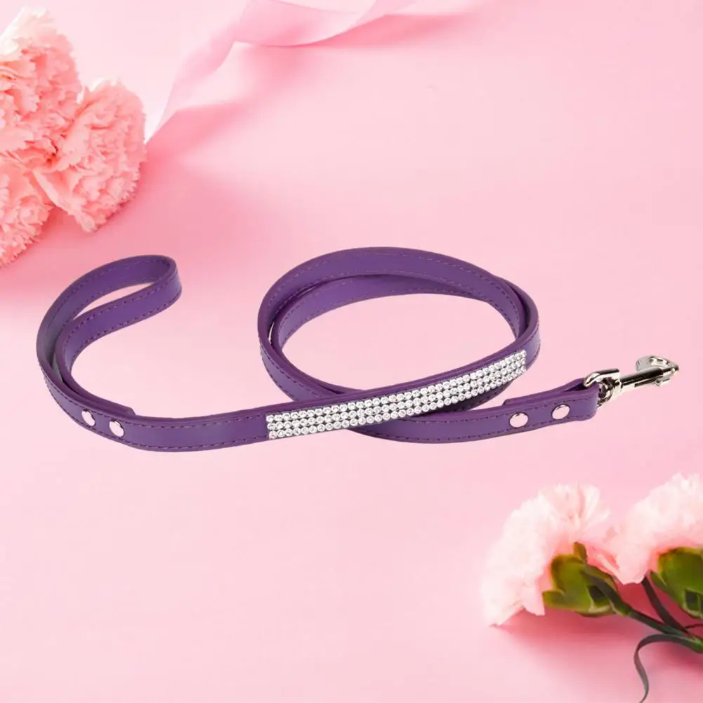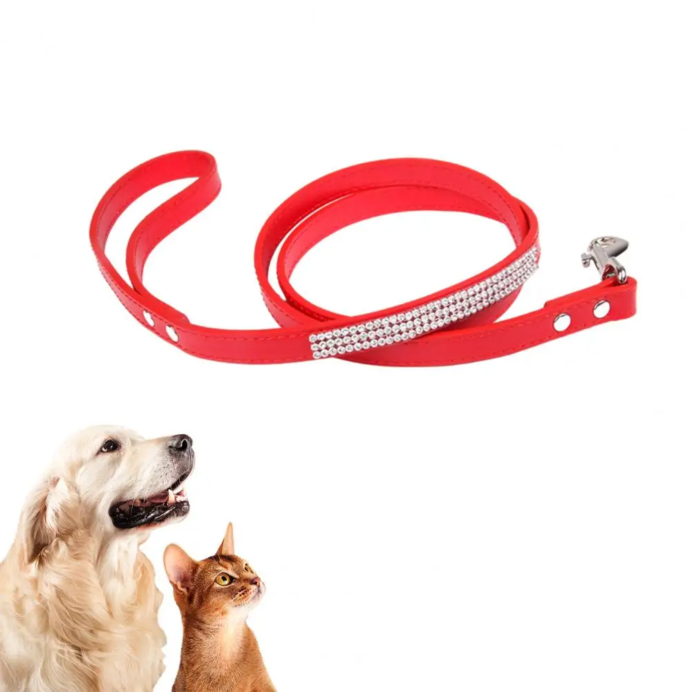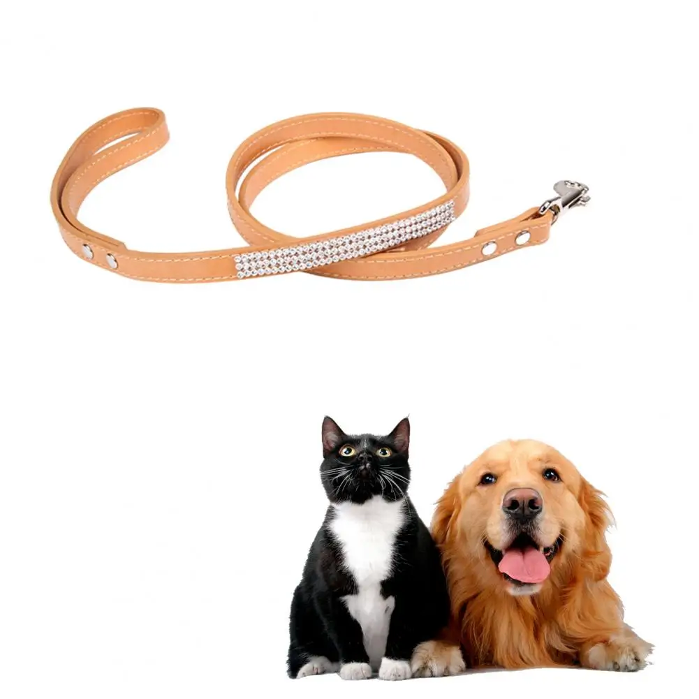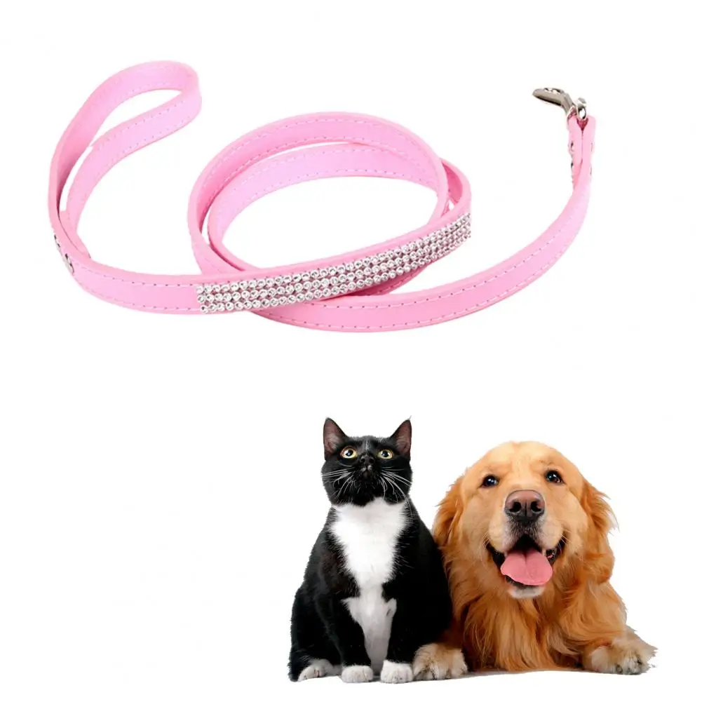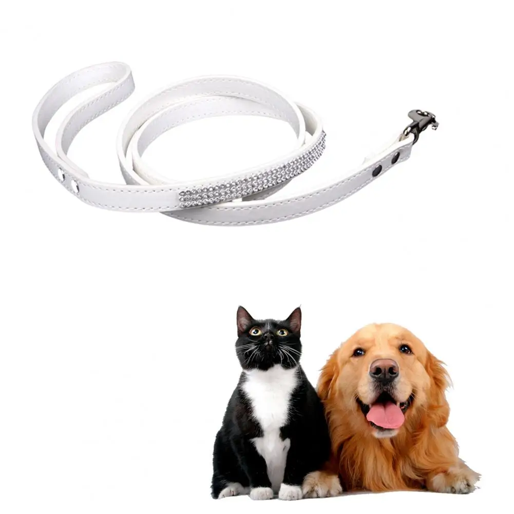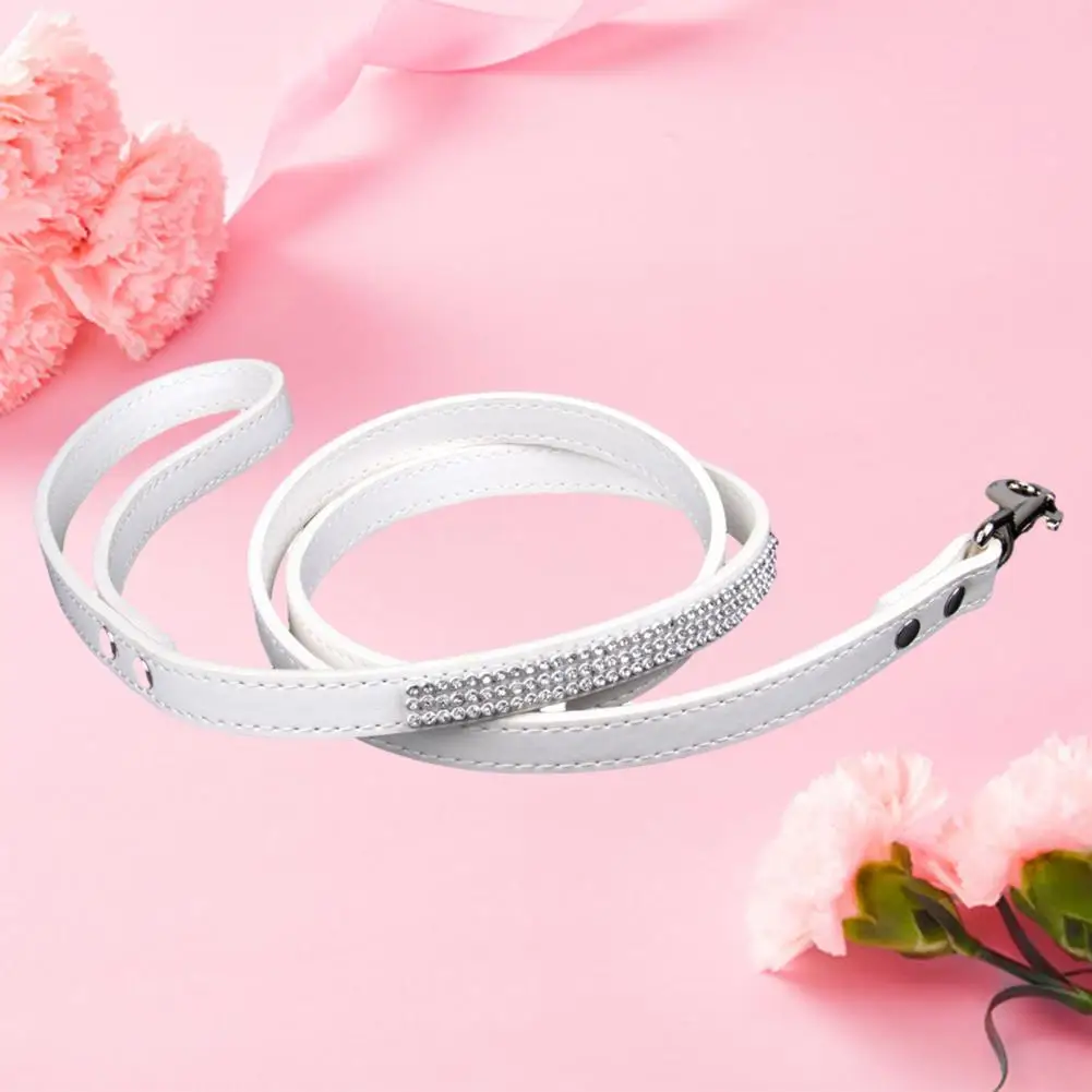 Correa para perros con diseño de diamantes de imitación brillantes y gancho para colgar Correa de cuero artificial cómoda de llevar