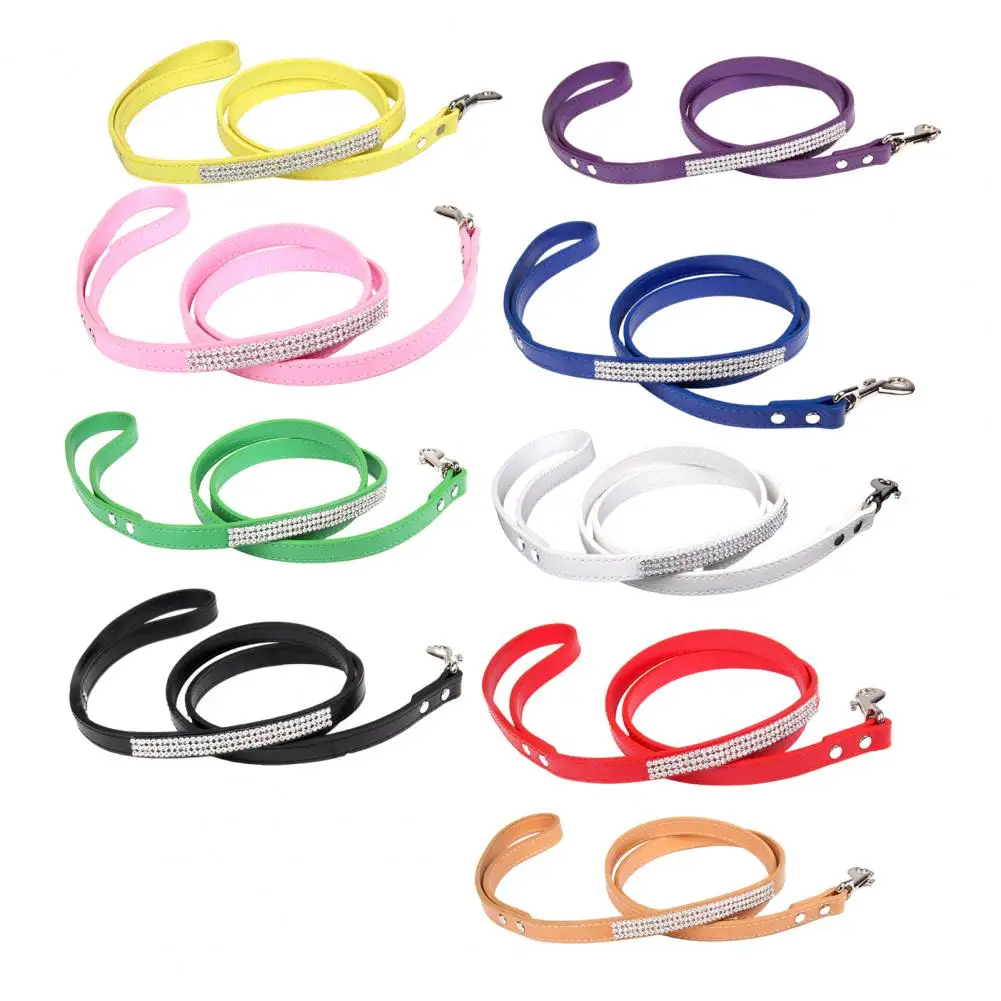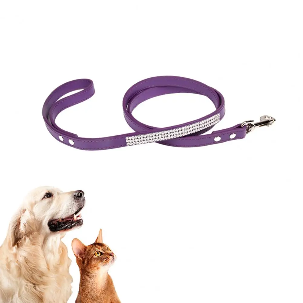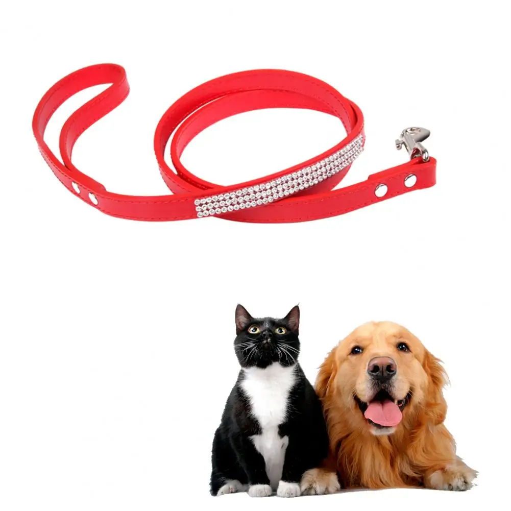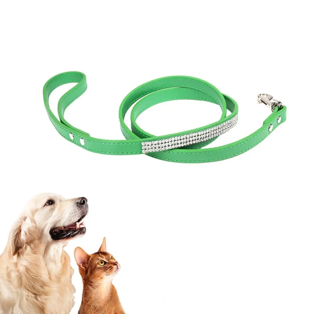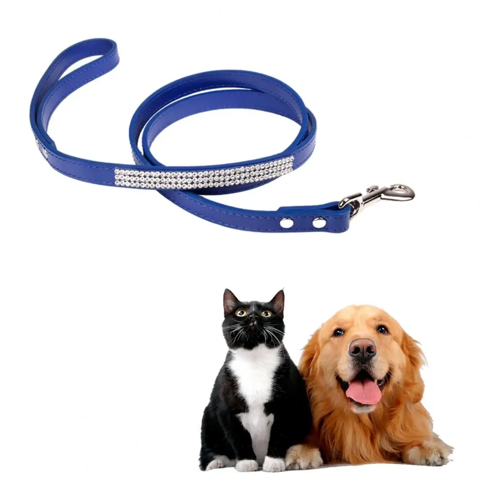 Correa para perros con diseño de diamantes de imitación brillantes y gancho para colgar Correa de cuero artificial cómoda de llevar