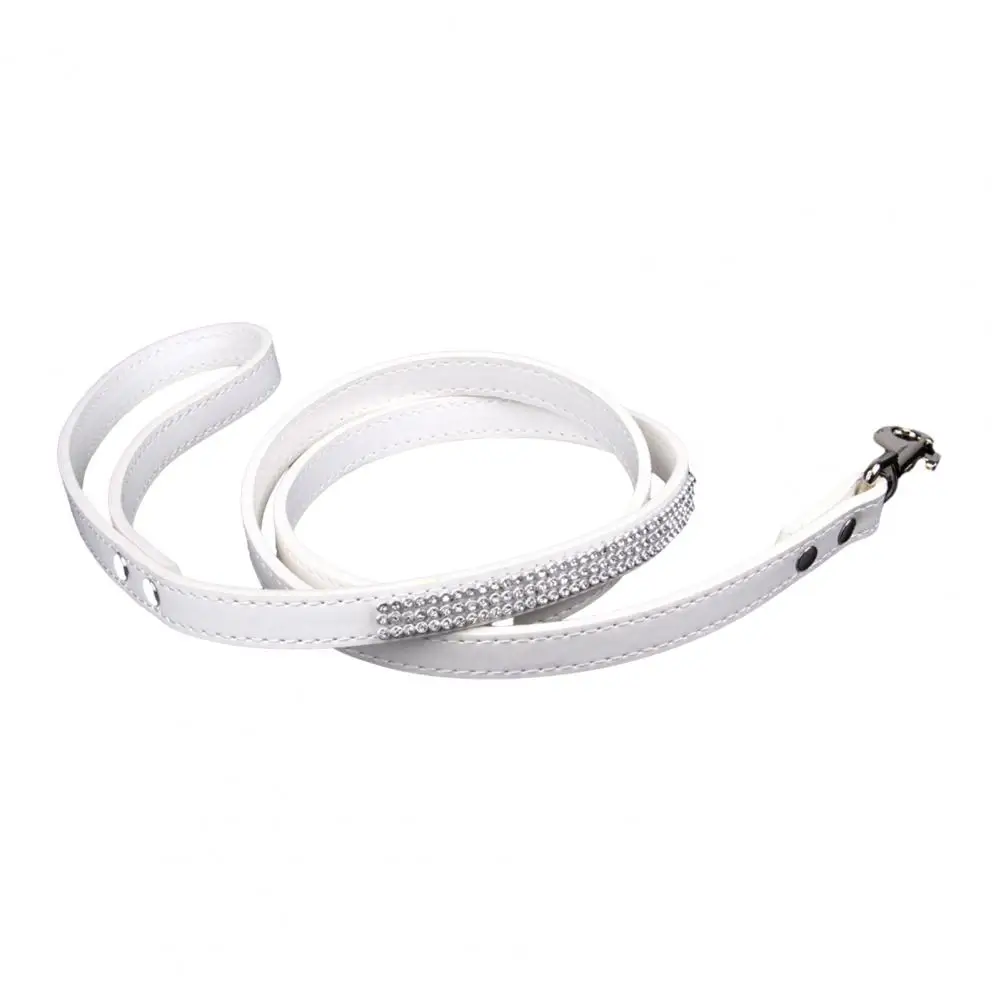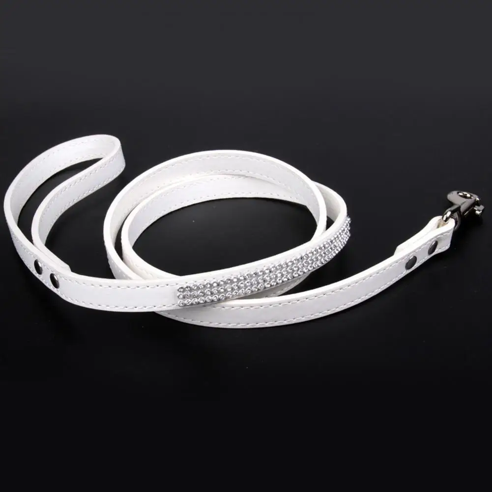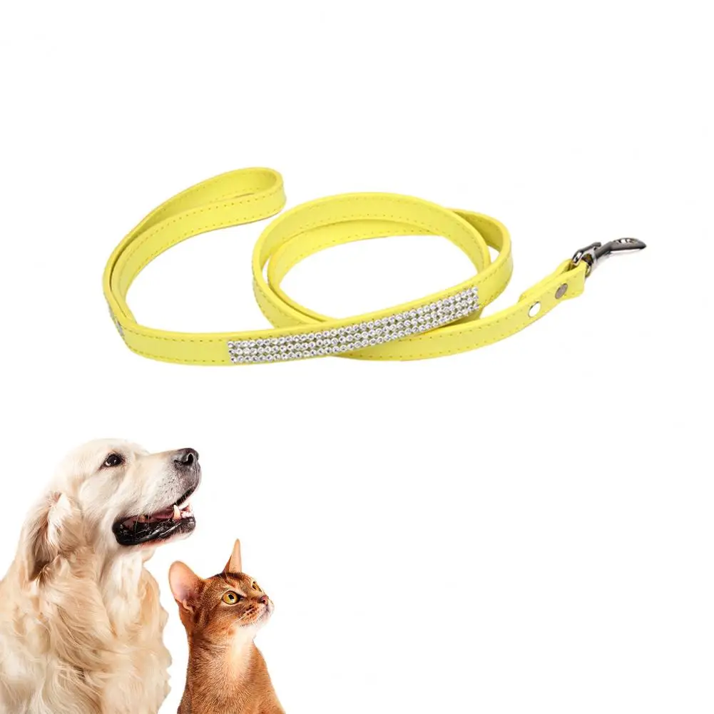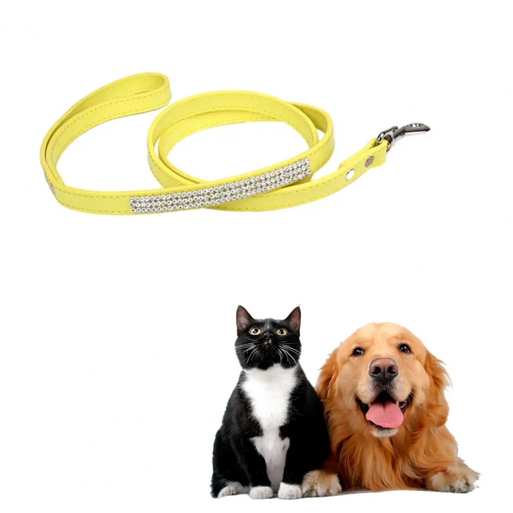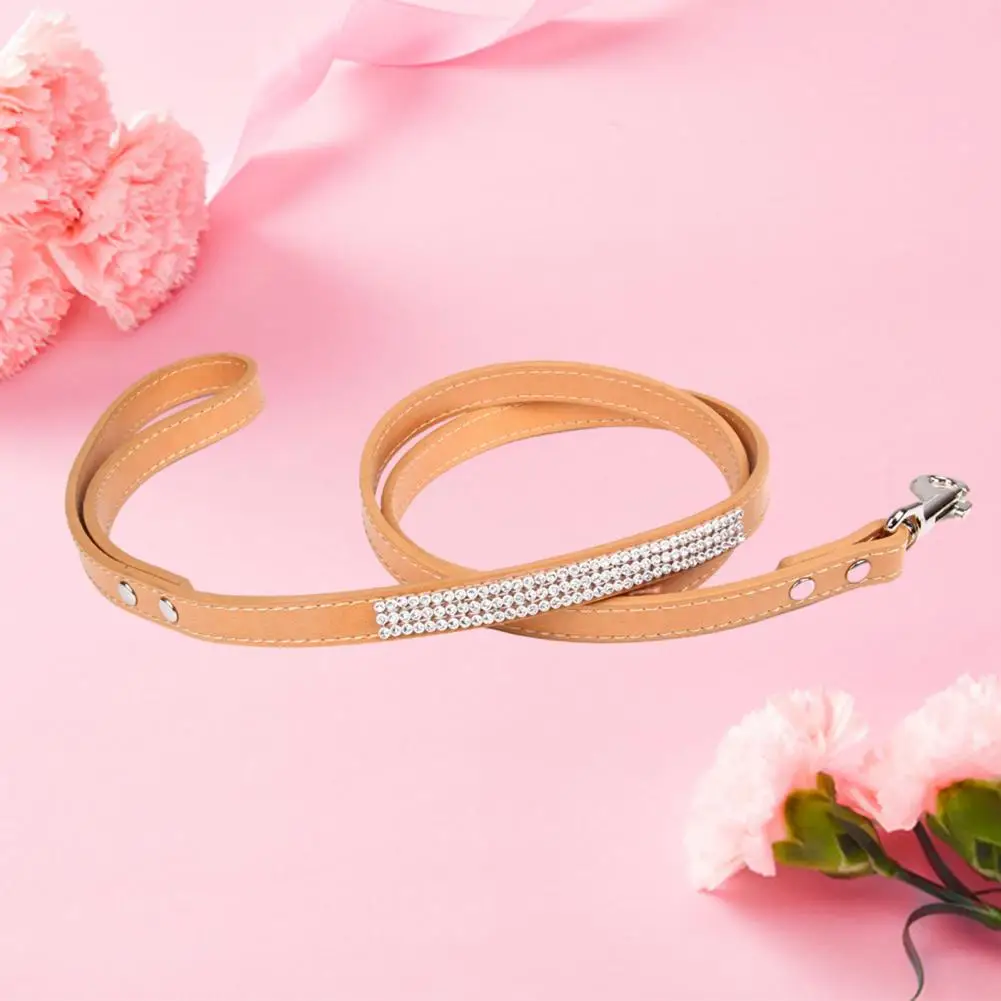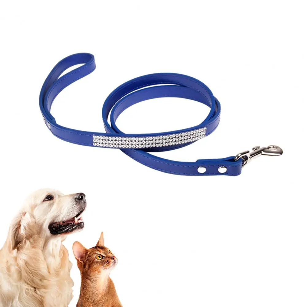 Correa para perros con diseño de diamantes de imitación brillantes y gancho para colgar Correa de cuero artificial cómoda de llevar
