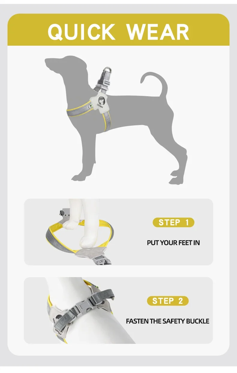 3. 【Efecto reflectante más allá de las expectativas】 --- Diseño más seguro. Hilos reflectantes a través de todo el arnés para garantizar una gran visibilidad por la noche. Incluso con una fuente de luz tenue, también puede asegurarse de caminar seguro debido a las tiras reflectantes súper brillantes.