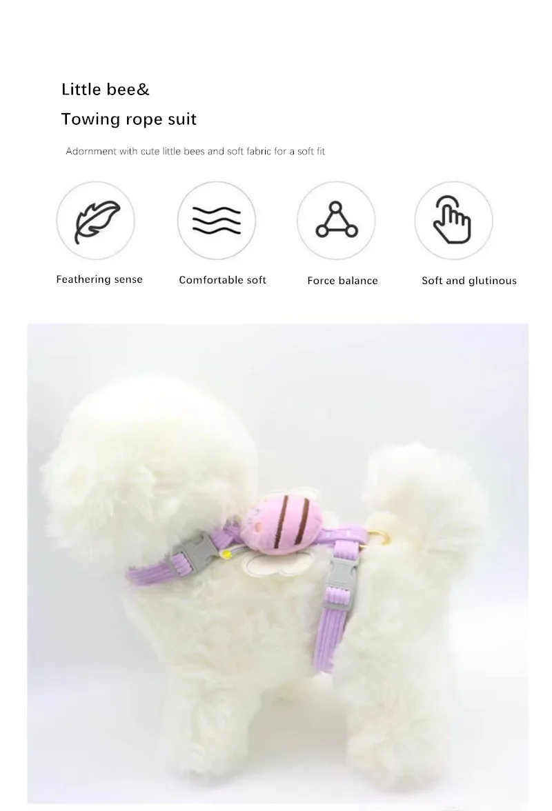 Correa para perro con estampado de abeja, Collar, corbata, arnés navideño para mascotas, cuerda de tracción, correa para el pecho para perros y gatos pequeños a medianos
