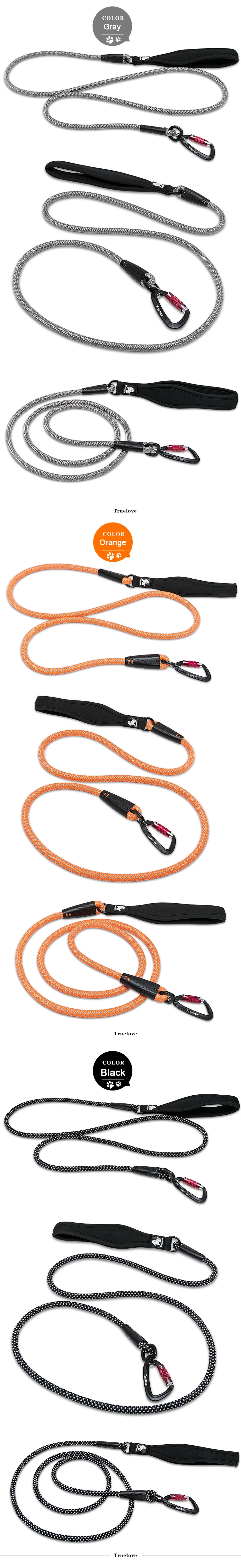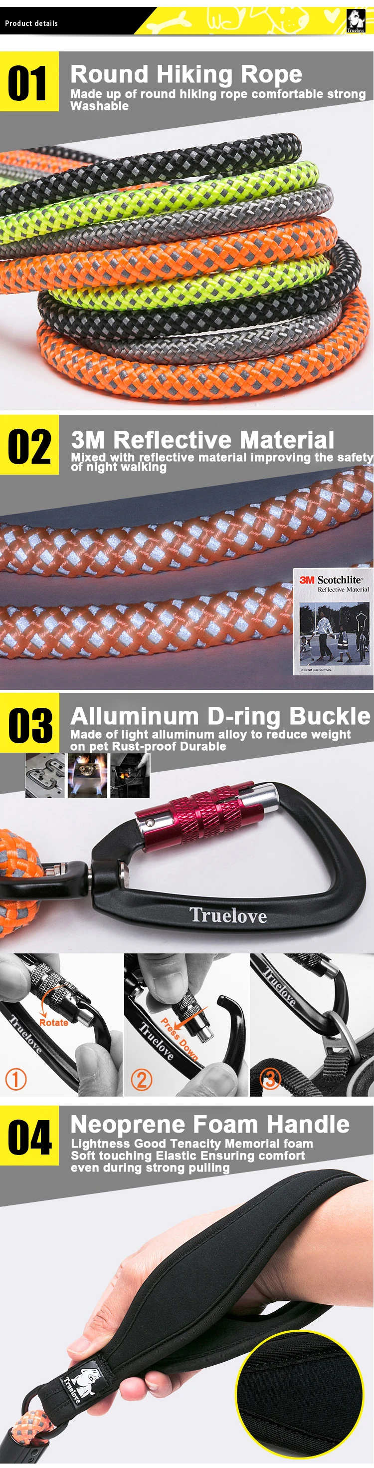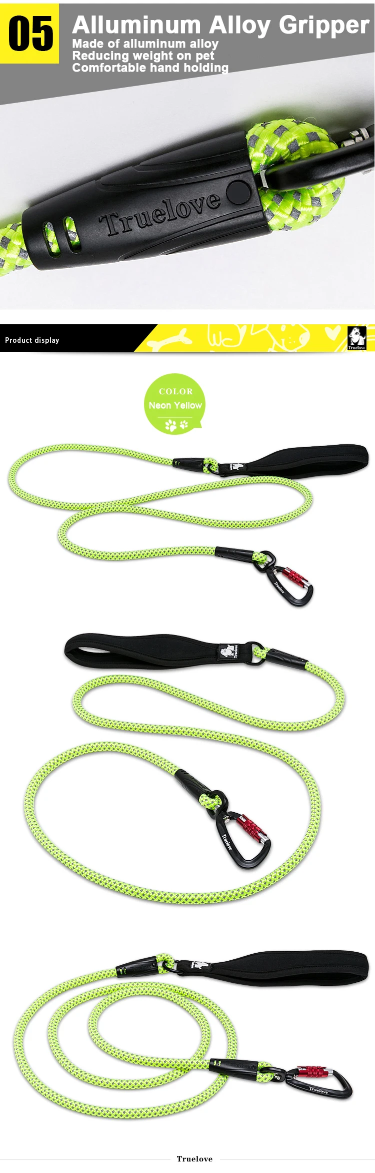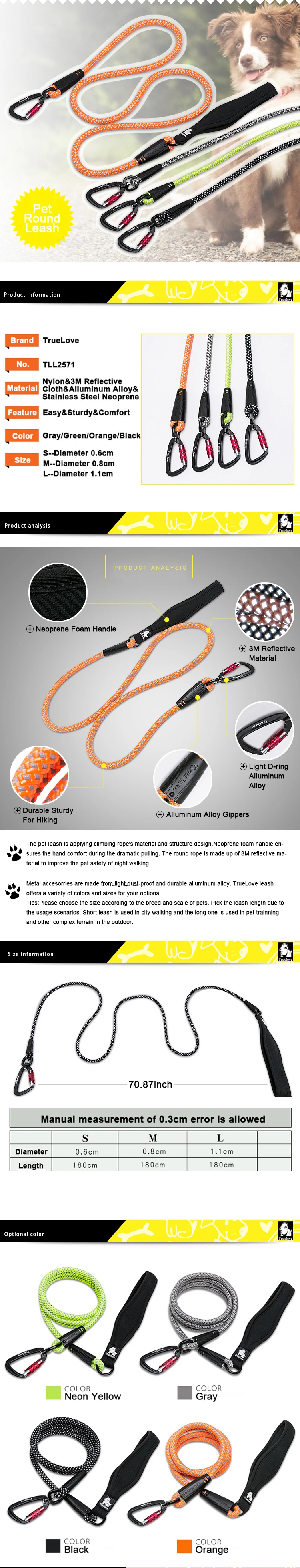 Tipo:Correa de nailon para perros TrueLove con gancho de aleación de aluminio reflectante de 3M, mango de neopreno con anillo en D de acero inoxidable TLL2571