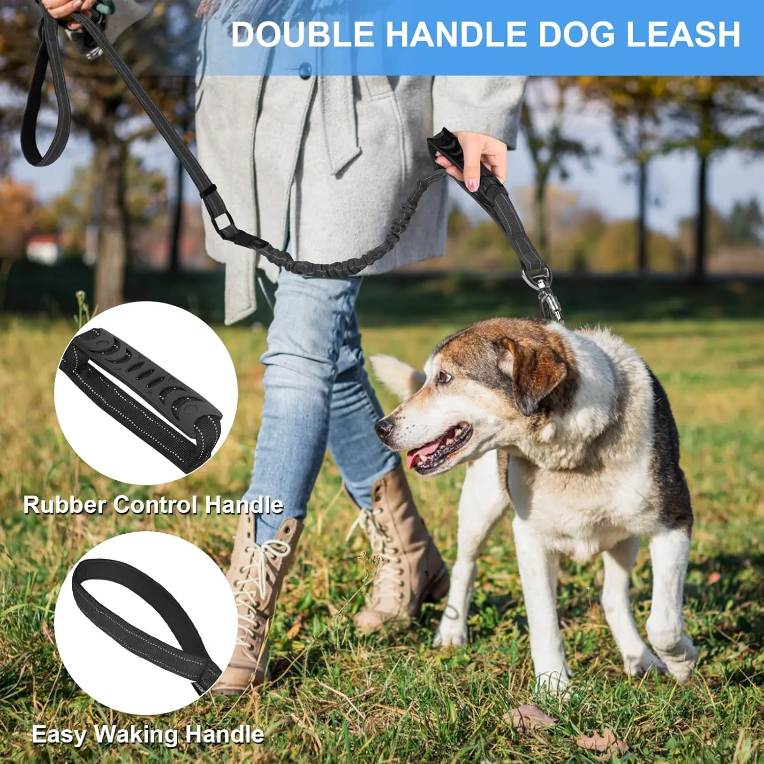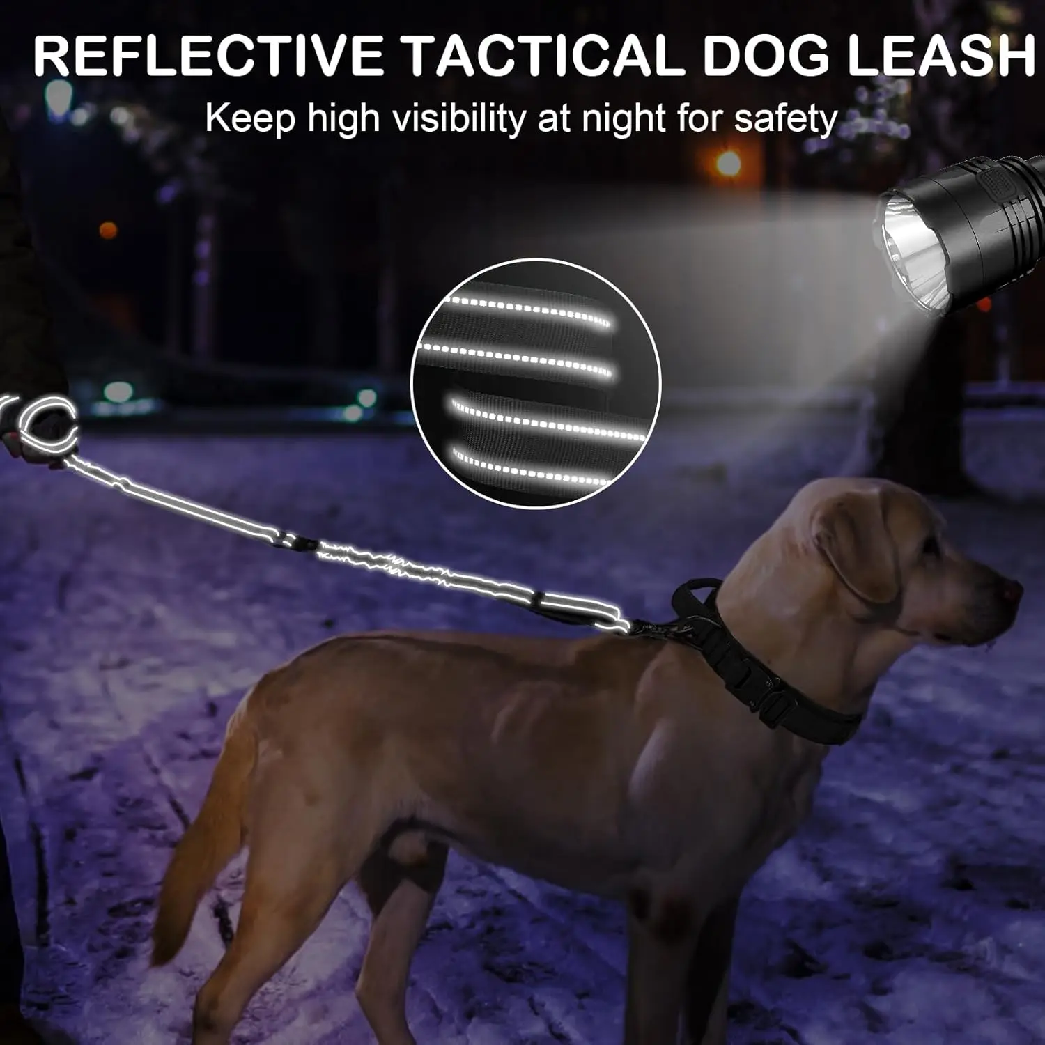 Correa para perros de alta resistencia para perros medianos y grandes que tiran, correa táctica para perros elástica que absorbe los golpes de 4-6 pies con mango acolchado de Control