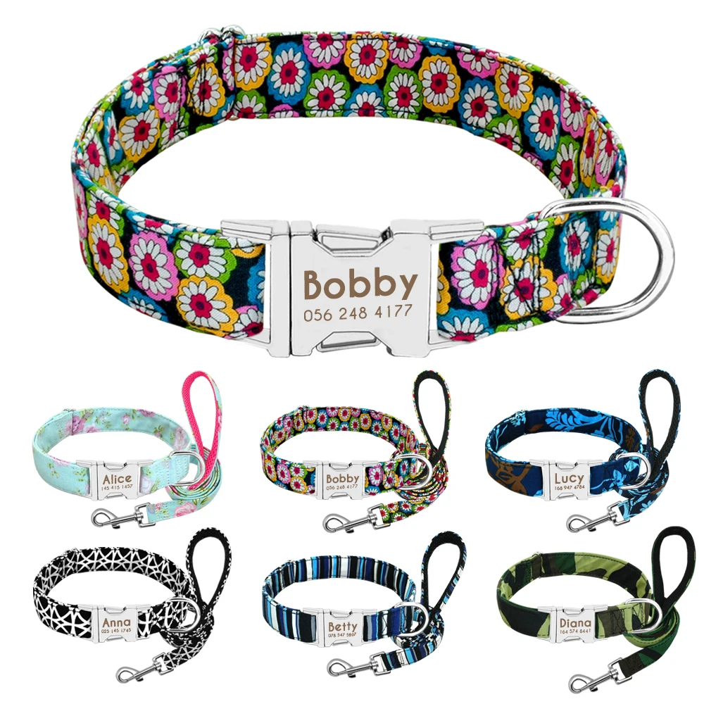 Nombre: Correa personalizada para collar de perro, collares y plomo con estampado de nailon para perros pequeños, medianos y grandes, para cachorros de pastor alemán Pitbull