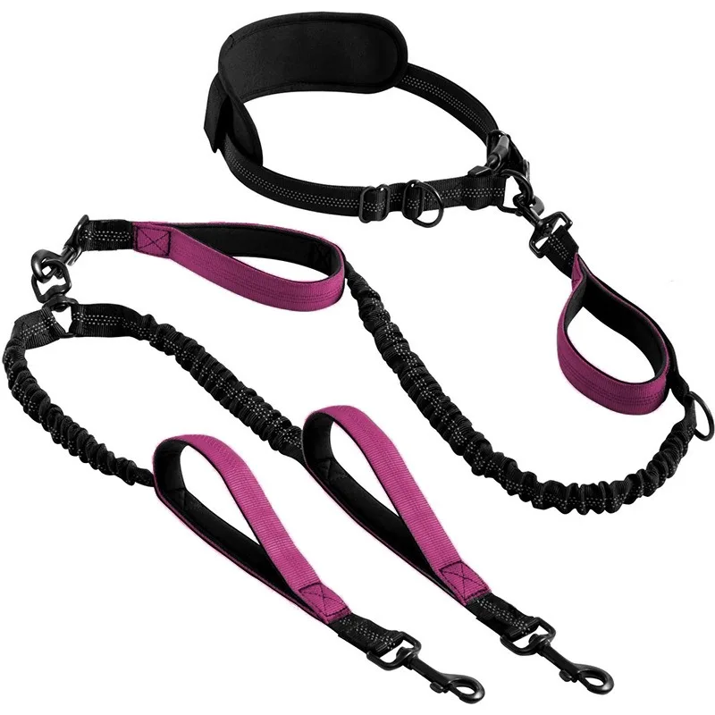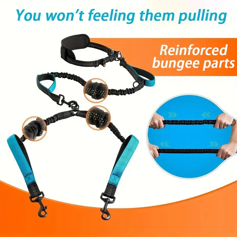 Correa doble manos libres o práctica -Ya sea que prefieras una correa manos libres o una tradicional, lo tenemos cubierto.Provocada con cierres reforzados de acero inoxidable para mayor seguridad, nuestra correa para perros para 2 perros se puede cambiar de manos libres a práctica en cuestión de segundos.