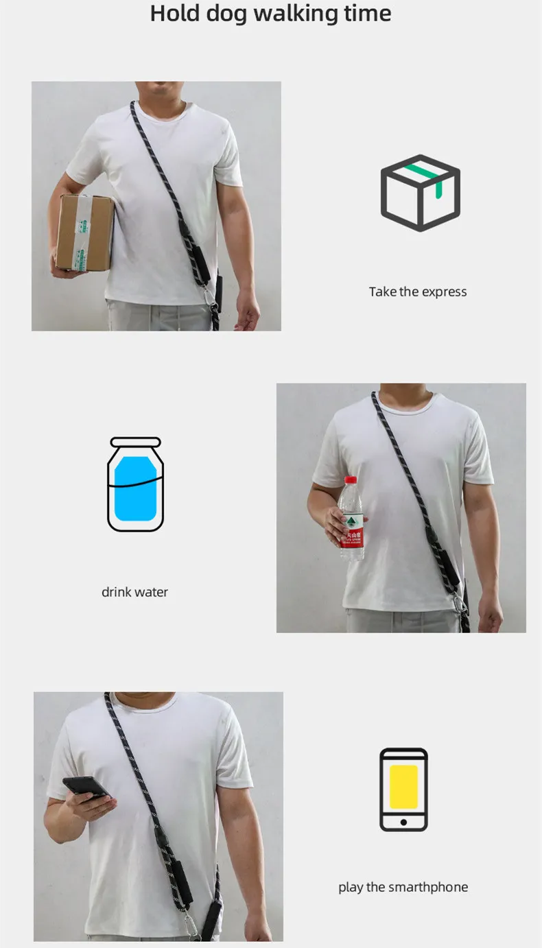 Correa reflectante con manos libres para perro, cuerda de tracción para caminar, caminar, correr, trotar, cadena para mascotas