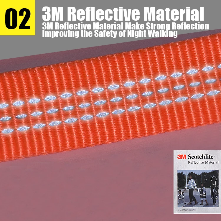 Al tejer material reflectante 3M en las correas, es fuertemente reflectante bajo poca luz, lo que mejora la seguridad al caminar de noche.