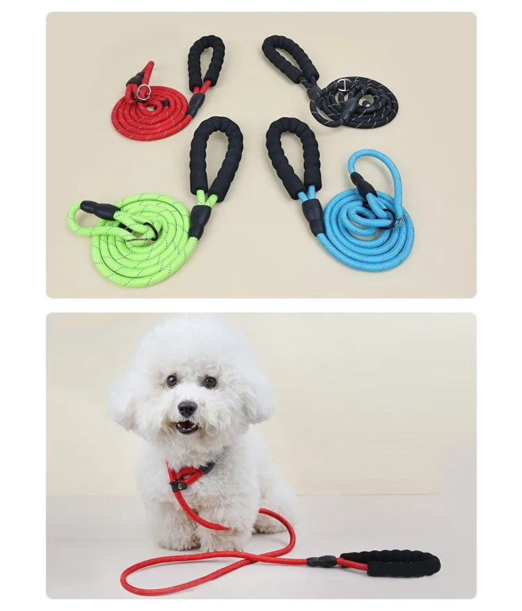 Correa reflectante para perro, correa ajustable de nailon, mango suave, 150cm
