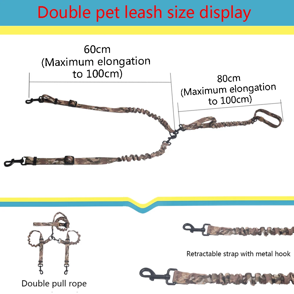 La longitud de la cuerda de mano del maestro es de 80 a 100 cm y la cuerda de la mascota es de 140 a 200 cm, lo que es adecuada para una variedad de perros medianos y perros grandes.