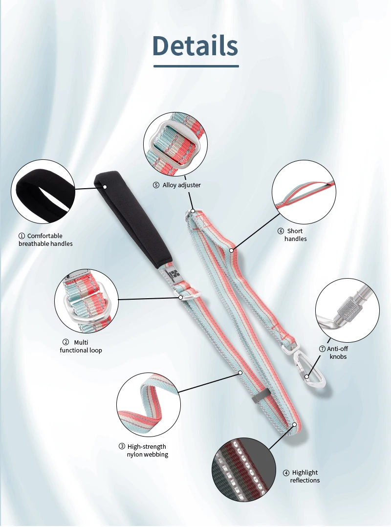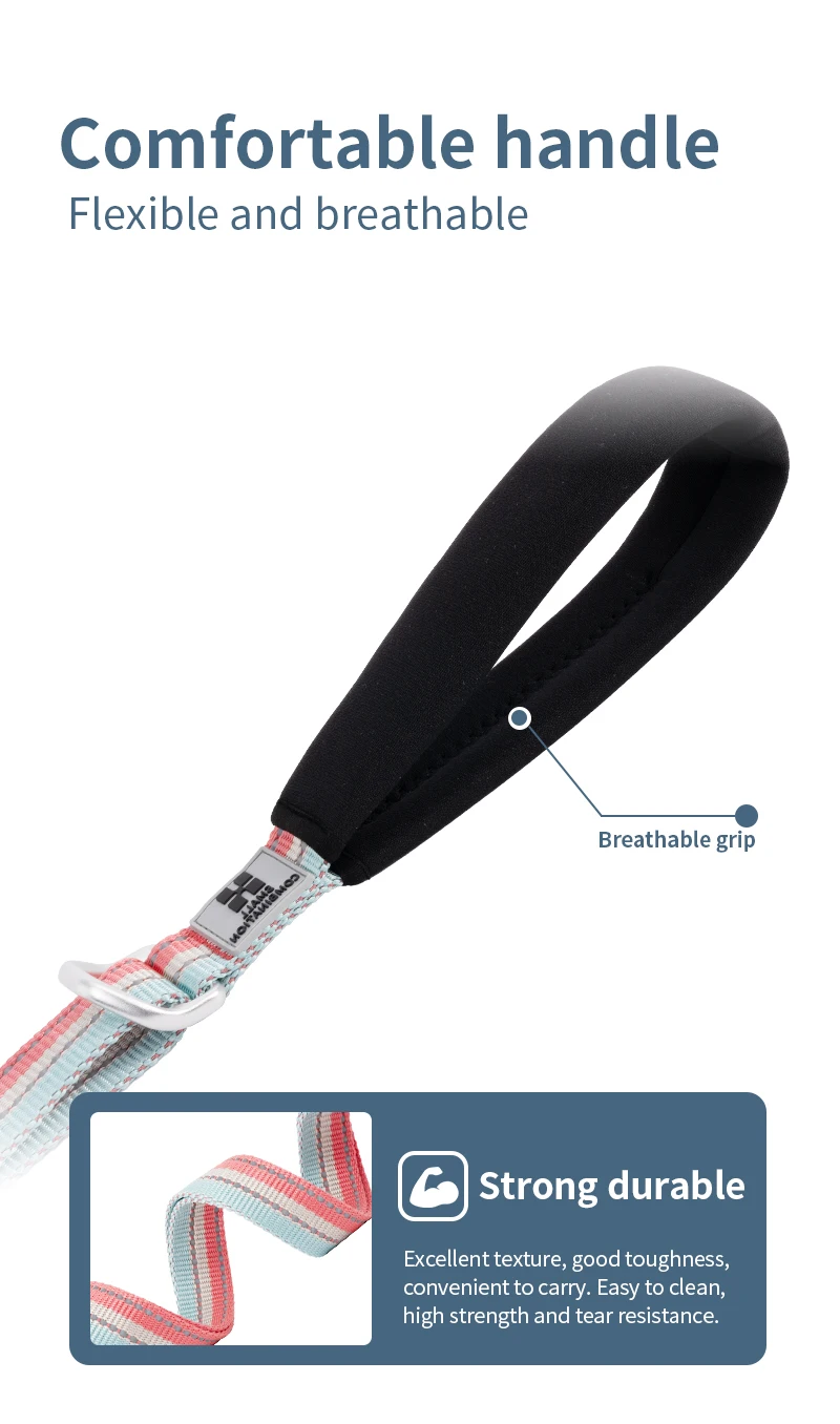 Correa para perro de material de nailon duradero: la correa para perro está hecha de correas de nailon multicolor. Correas de alta densidad para agregar durabilidad que podría ser. Hay 3 colores de cuerda de tracción para aumentar la riqueza de la correa para perro de color adecuada para perros grandes, medianos y pequeños.