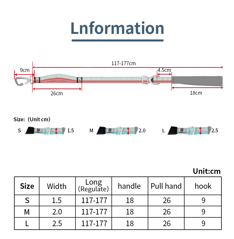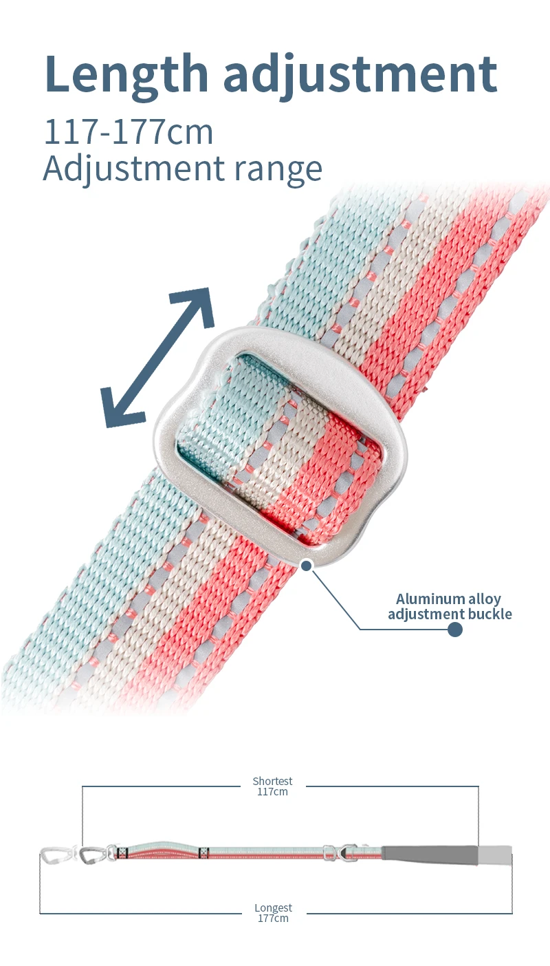 Longitud ajustable: el ajustador rectangular de aleación de aluminio de la correa del perro permite establecer la longitud entre 46,06 pulgadas y 69,69 pulgadas para diferentes escenarios, como entrenamiento de recuperación, entrenamiento de seguimiento. Brinde nuestro entrenamiento de modificación y creación de obediencia.