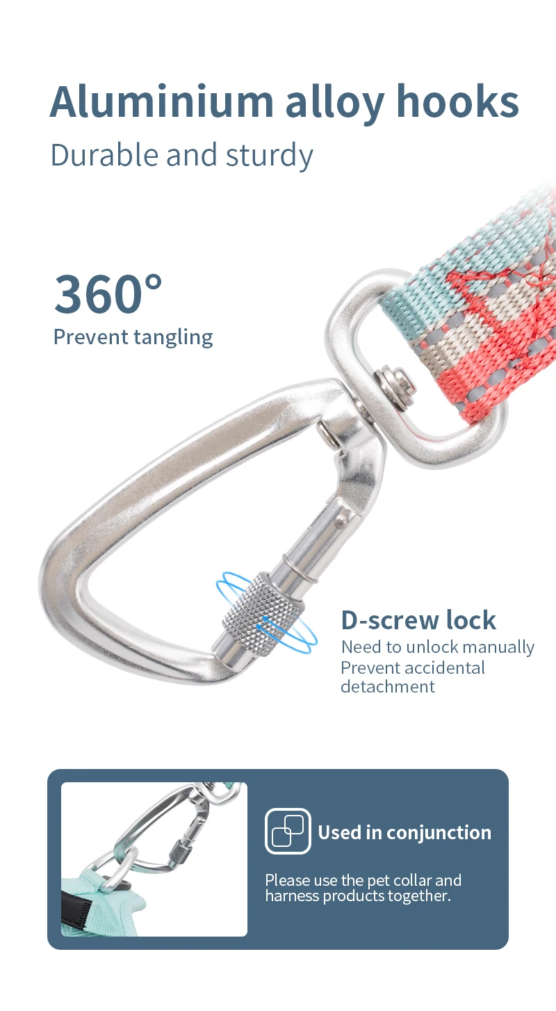 【Cierre de bloqueo giratorio de 360 grados】 - La correa para perros está equipada con un mosquetón de escalada liviano pero súper duradero que está hecho de aleación de aluminio de aviación.