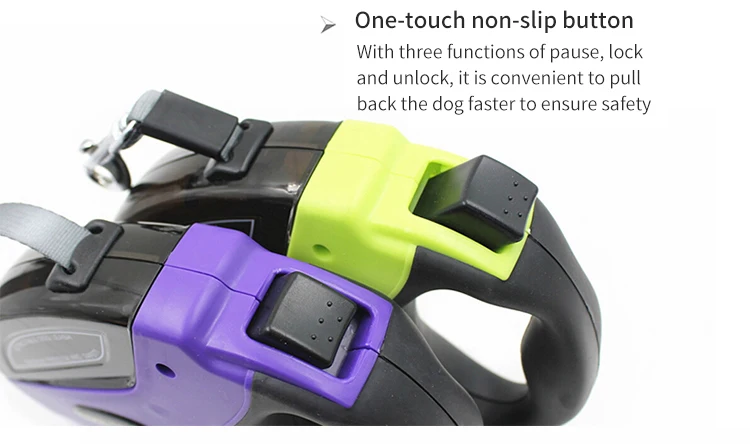 Botón antideslizante de un toque con tres funciones de pausa, bloqueo y desbloqueo, es conveniente retirar al perro más rápido para garantizar la seguridad