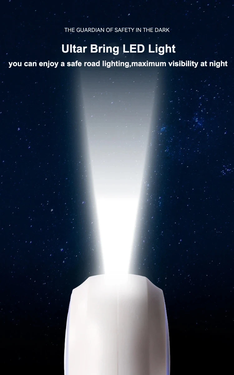 1. Brillo táctil ligero, iluminación del foco. Combinado con linterna LED, brillo de cuentas de lámpara de 100LM, distancia de irradiación de 5m, puede ver la carretera claramente por la noche caminando al aire libre.