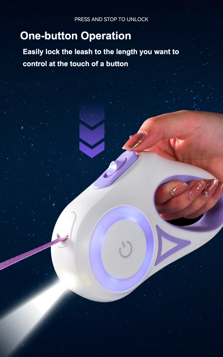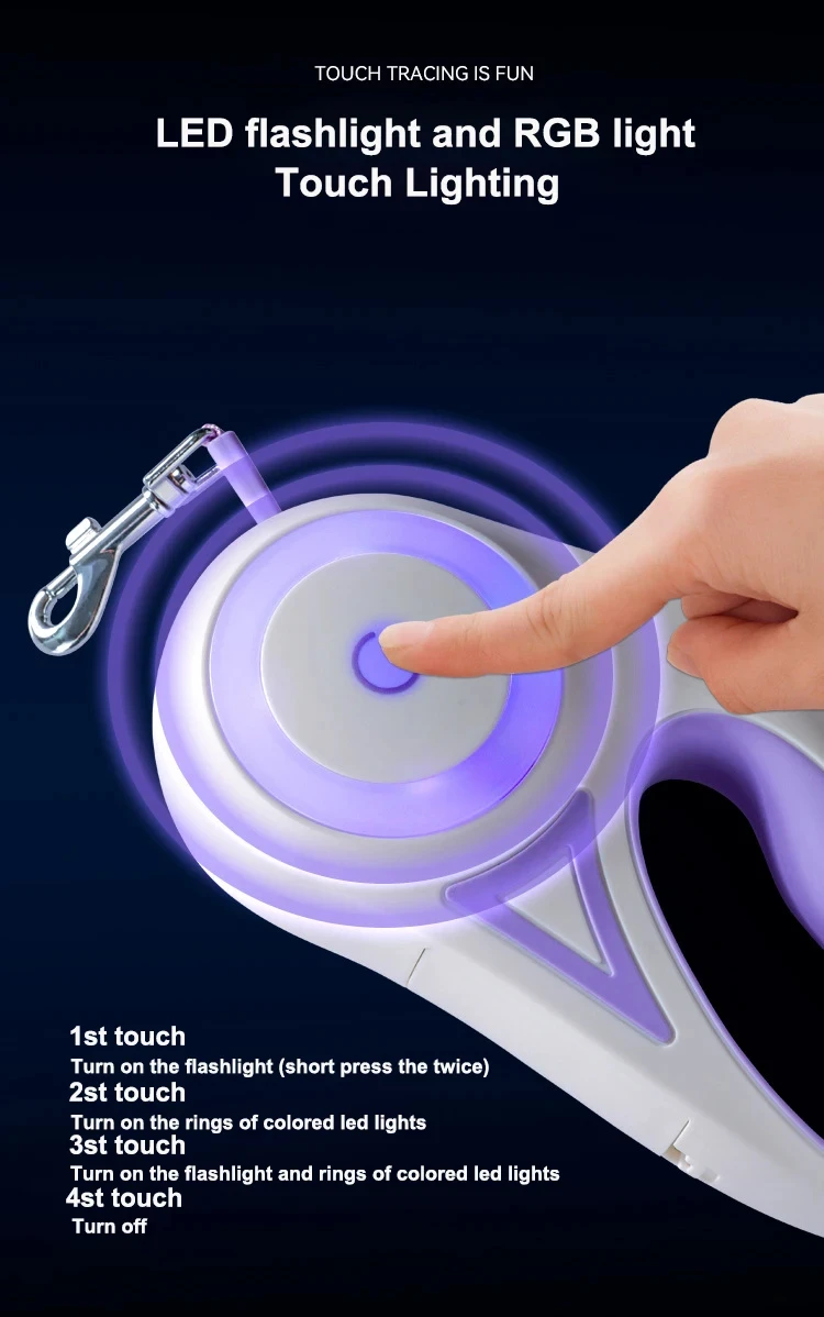 • Linterna LED para mayor seguridad:La linterna LED incorporada proporciona una mayor seguridad durante los paseos nocturnos, asegurando que usted y su mascota sean visibles para los demás.