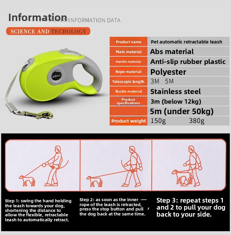 Correa retráctil automática para perros, suministros para mascotas, Tractor reflectante para caminar, 3/5/8 metros