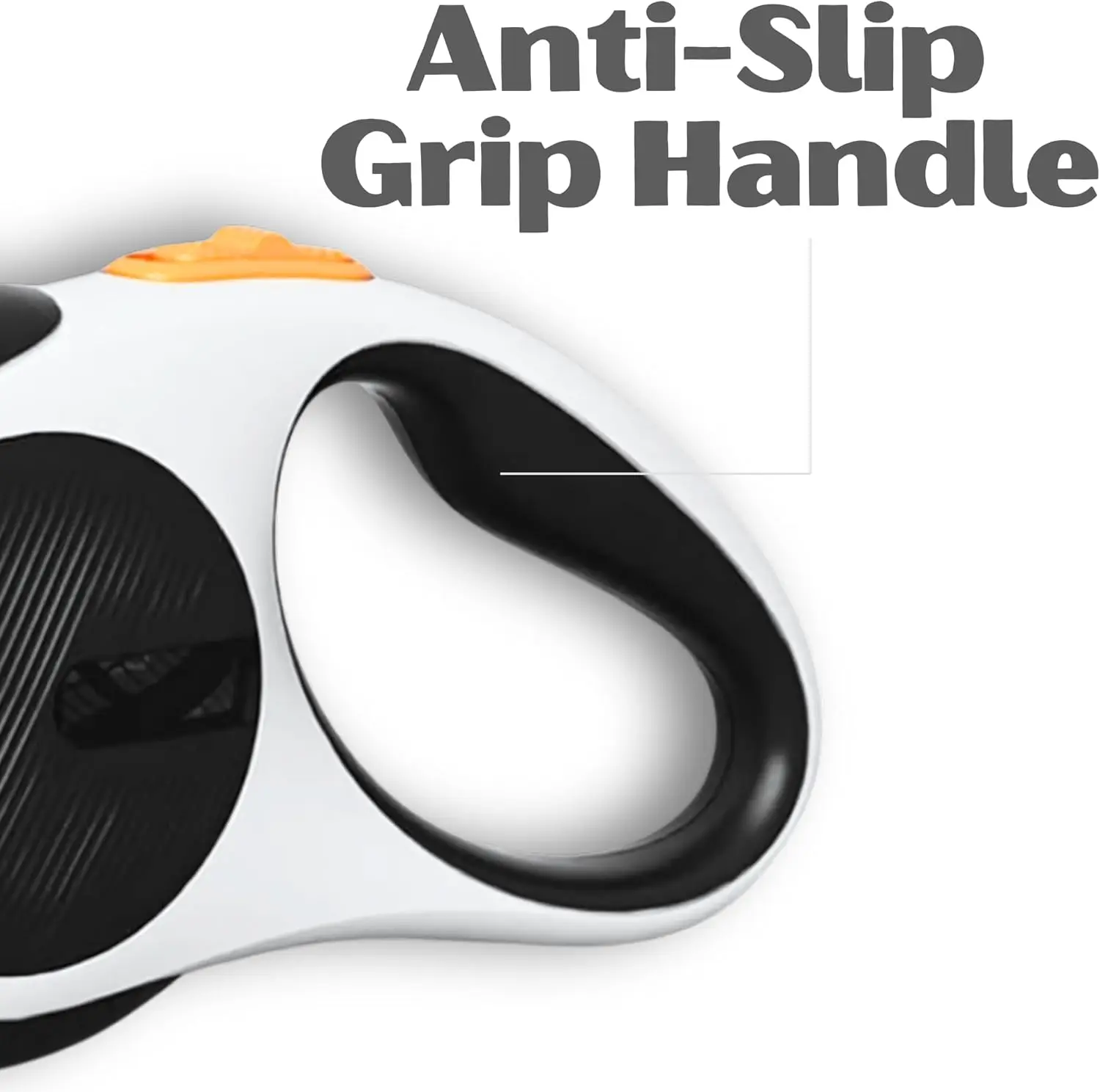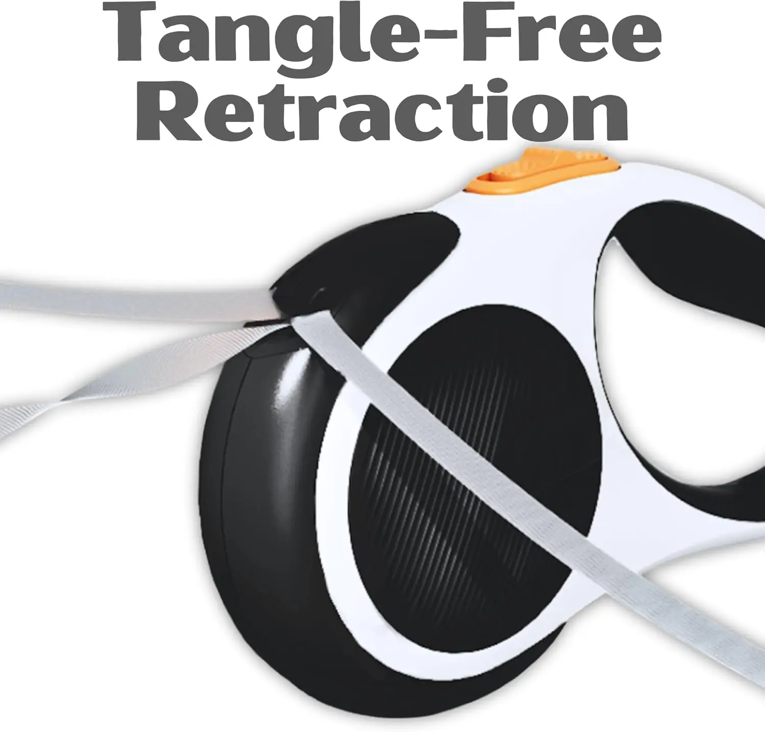 Correa retráctil para perros, correa resistente, mango de goma antideslizante, freno con una sola mano, cinta de nailon resistente, sin enredos
