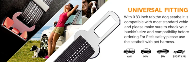 Pestaña de 0,83 pulgadas, el asiento para perros es compatible con la mayoría de los vehículos estándar y asegúrese de verificar el tamaño y la compatibilidad de su hebilla antes de realizar el pedido. Para la seguridad de la mascota, use el cinturón de seguridad con arnés para mascotas.