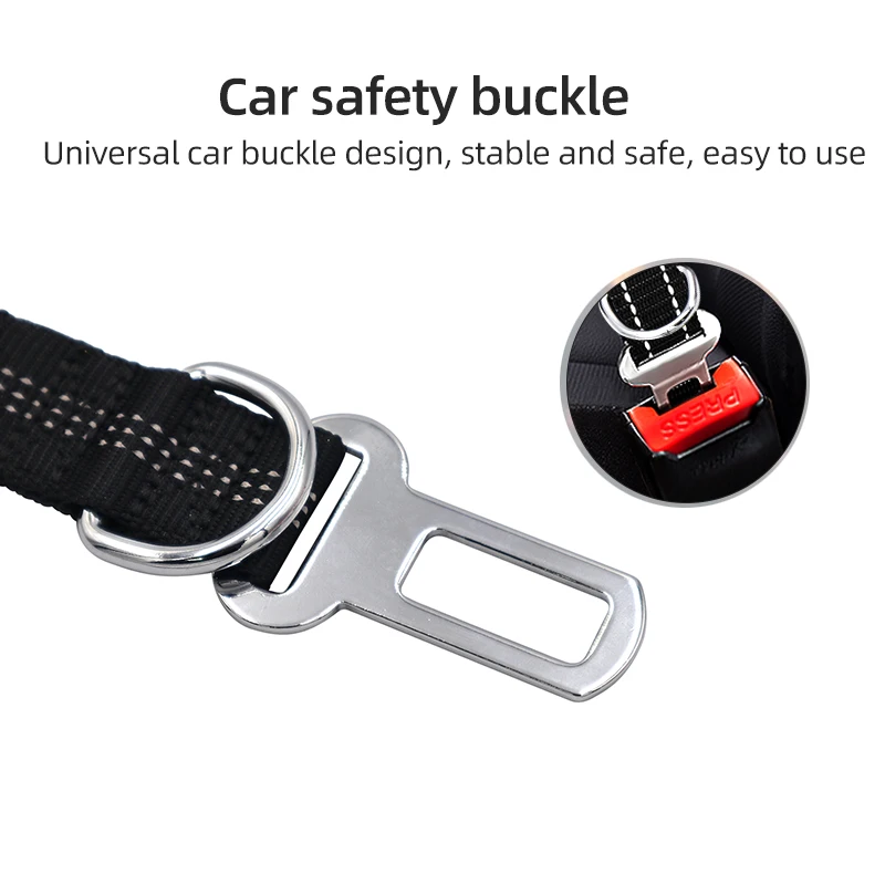 1. El cinturón de seguridad para perros se puede sujetar fácilmente en la hebilla del cinturón de seguridad del automóvil.