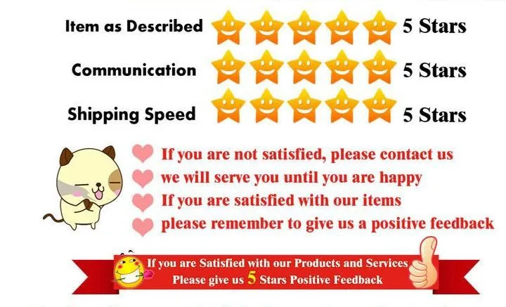 1.Confiamos en nuestra reputación de Alibaba y la satisfacción del cliente para tener éxito.Por lo tanto, sus comentarios son extremadamente importantes para nosotros. Déjenos buenos comentarios si está satisfecho con nuestros productos y servicios.