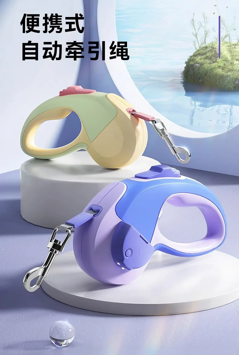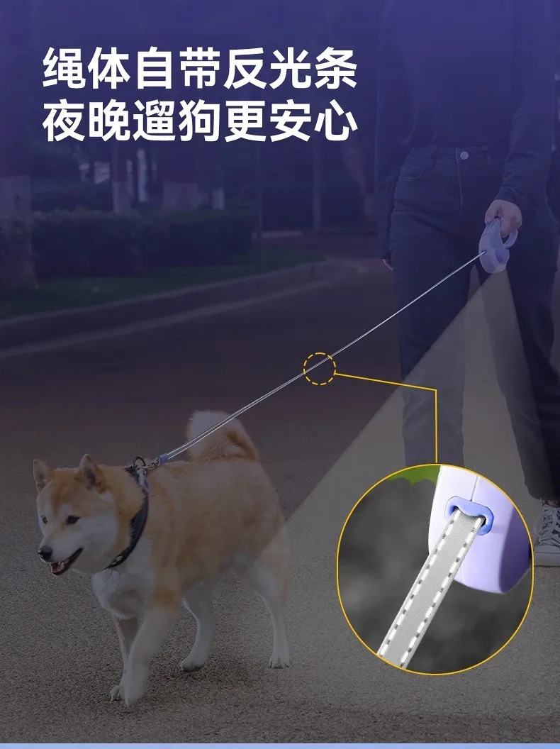 Correa telescópica automática para perros, cuerda para caminar para perros, cadena para mascotas a prueba de explosiones, suministros para mascotas con luces