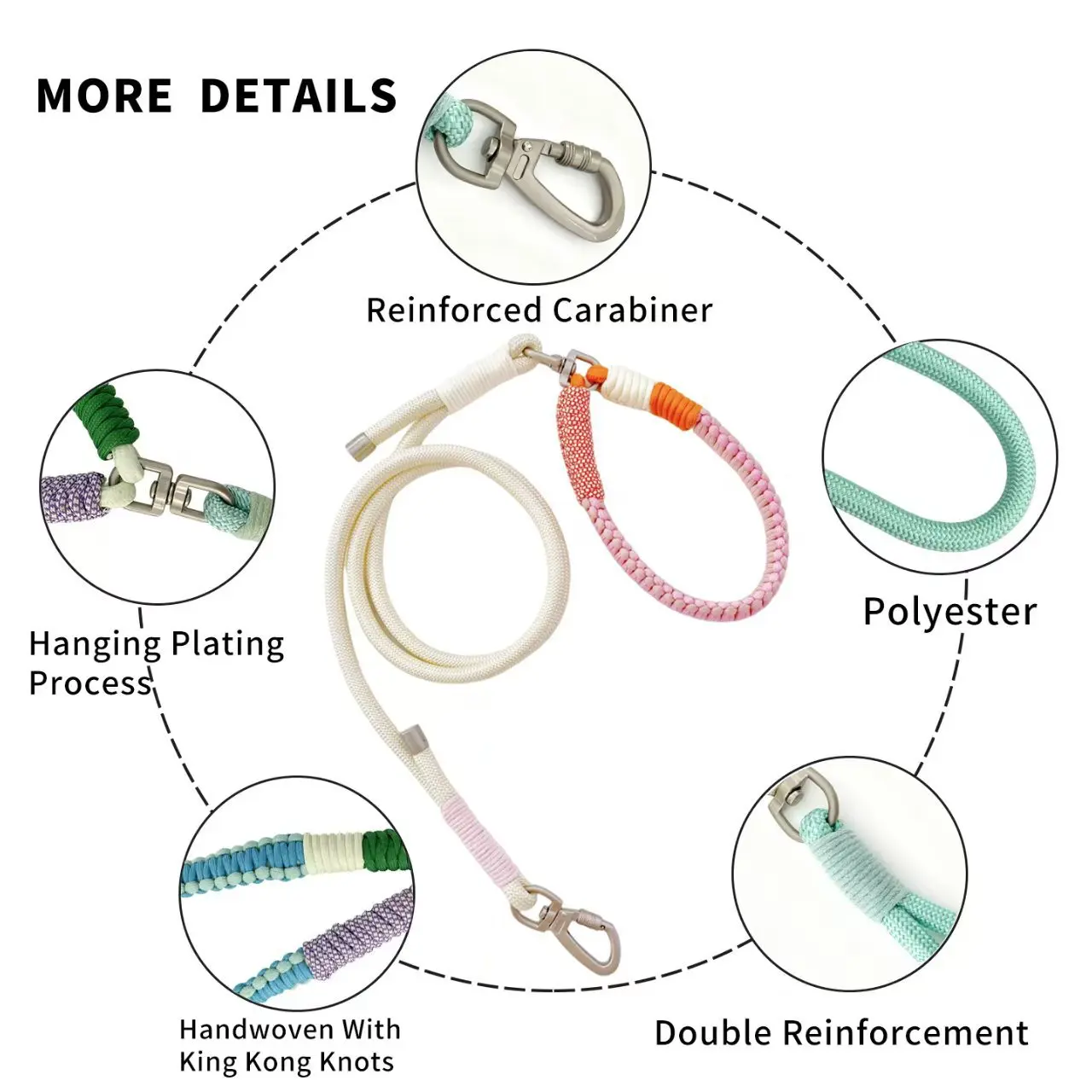 Correa trenzada hecha a mano para perro de 5 pies, correas de nailon resistente para mascotas, cuerda de algodón para caminar y entrenar, cuerda de tracción tejida a mano para mascotas