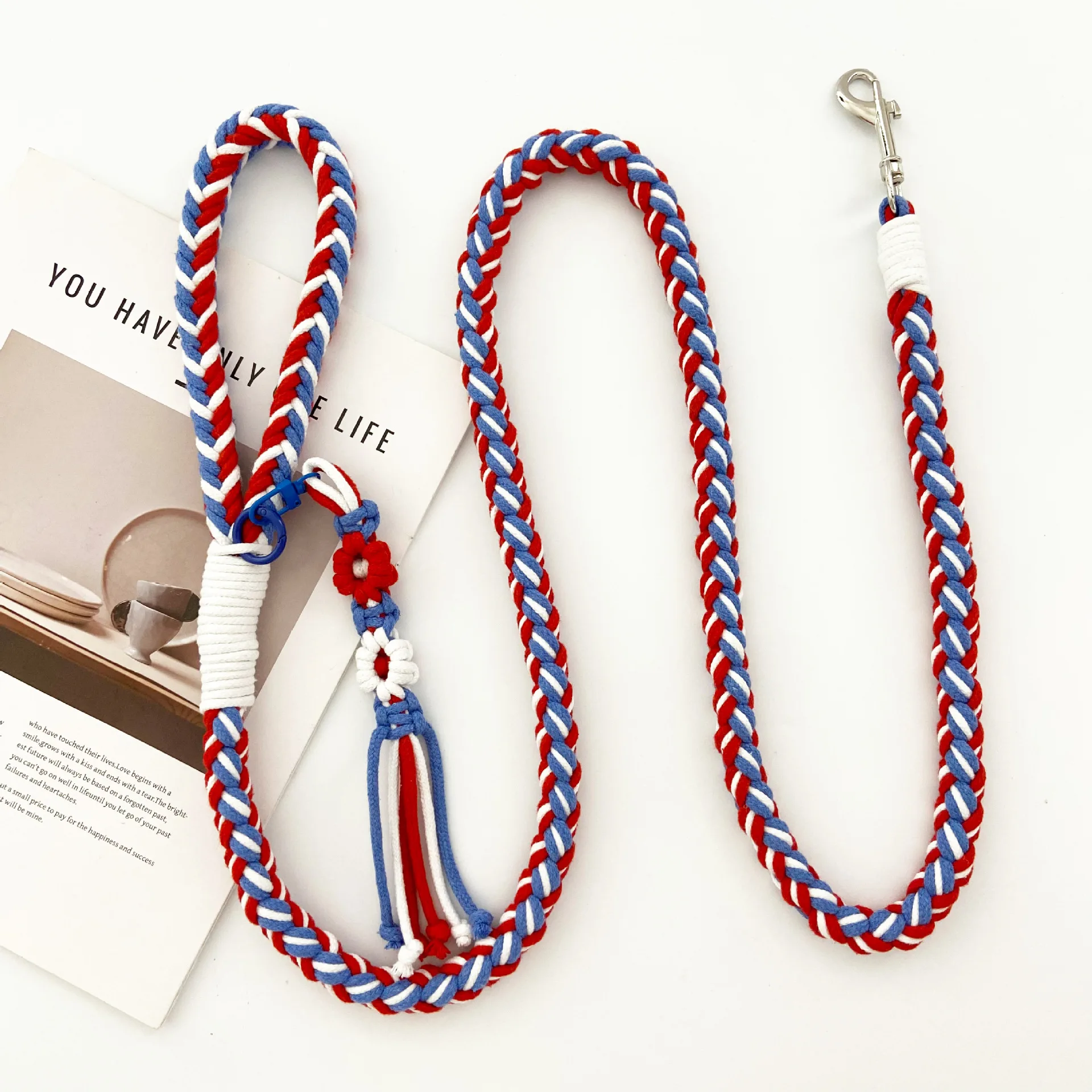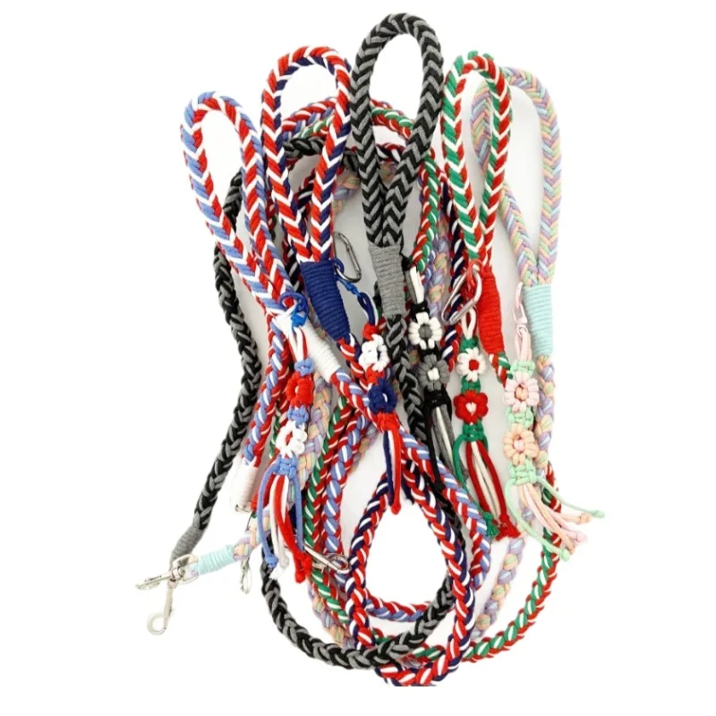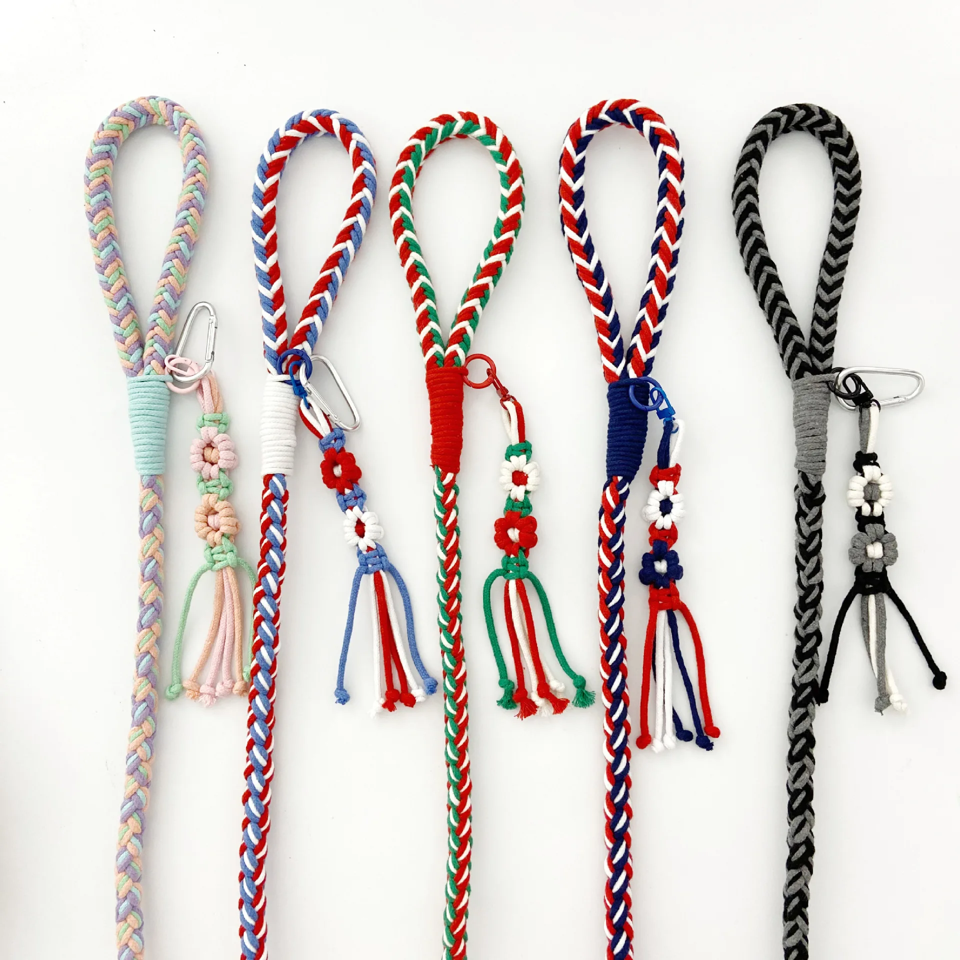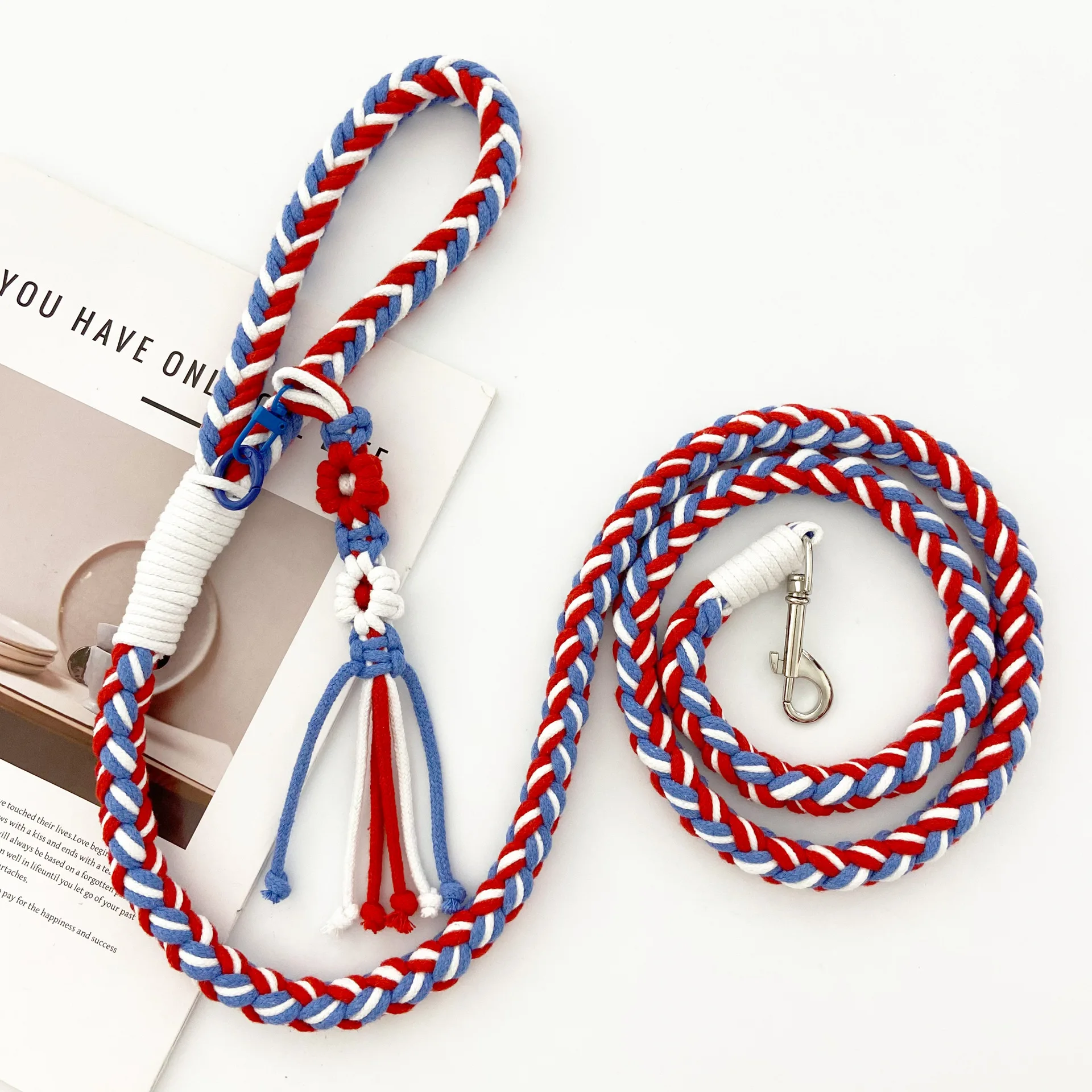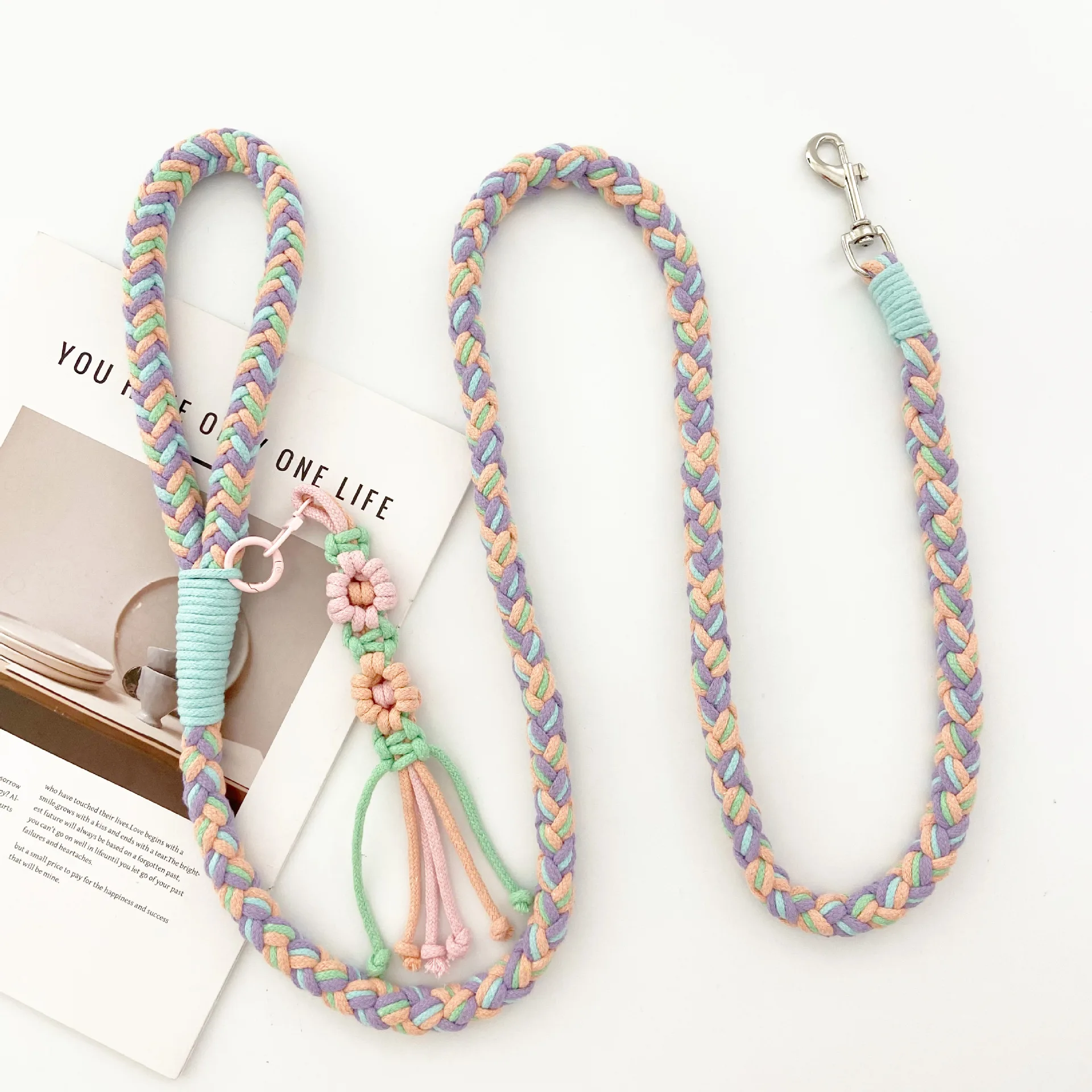 Correa trenzada hecha a mano para perro de 5 pies, diseño Floral, correas para mascotas, cuerda de algodón para caminar y entrenar, cuerda de tracción tejida a mano para mascotas