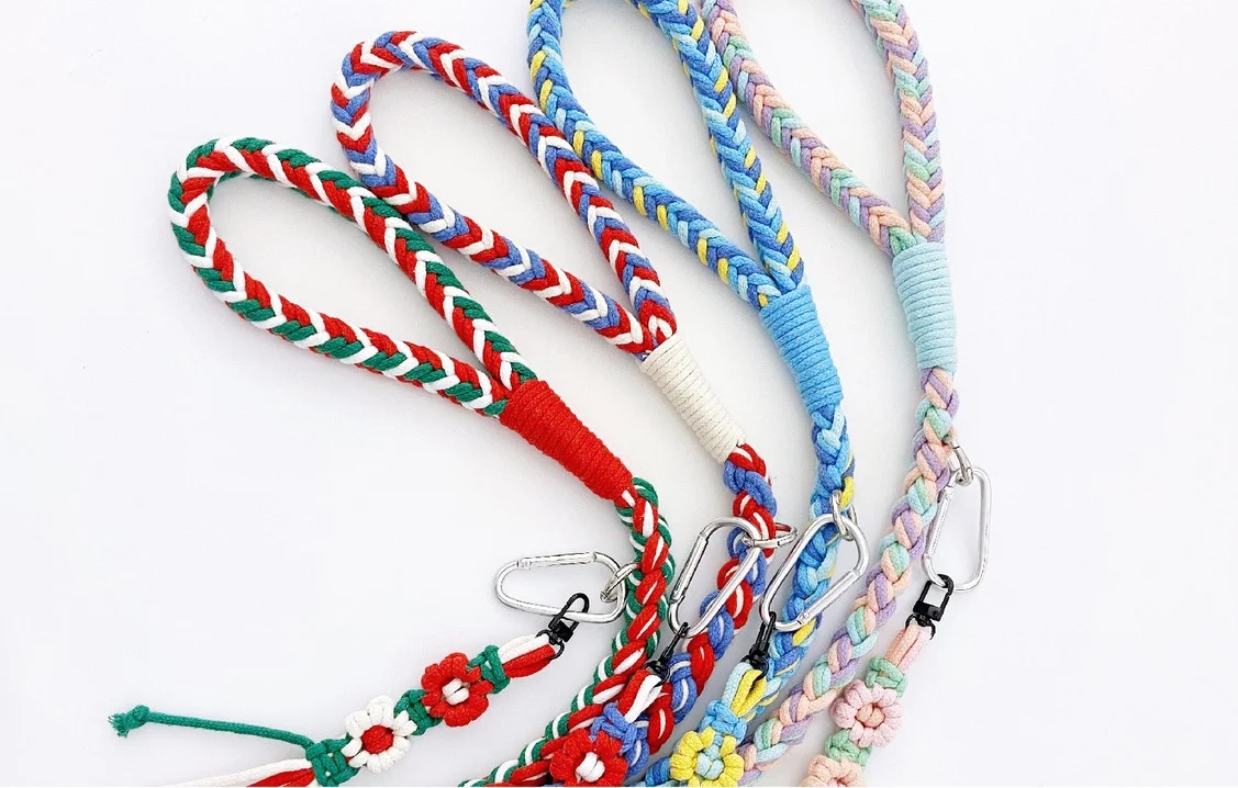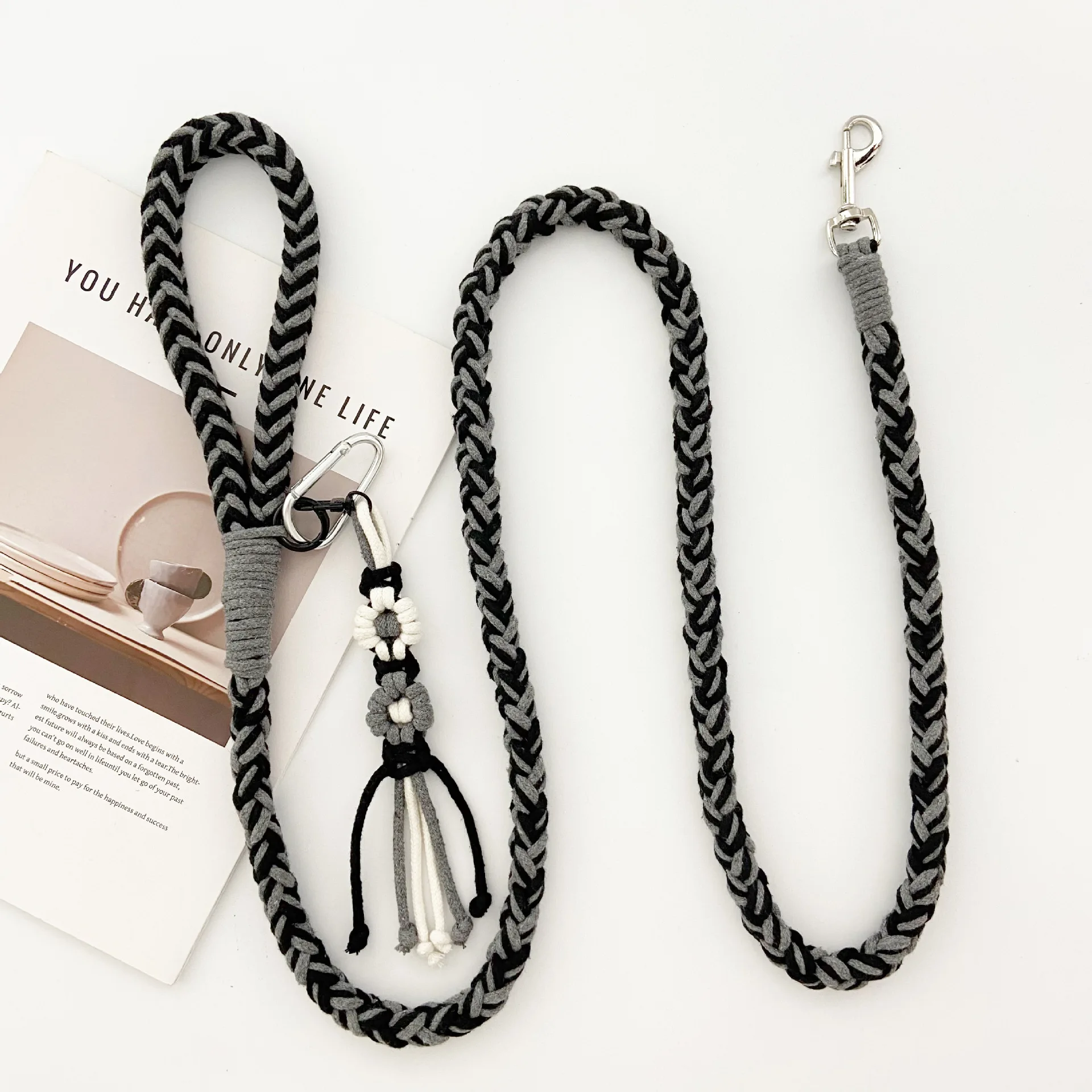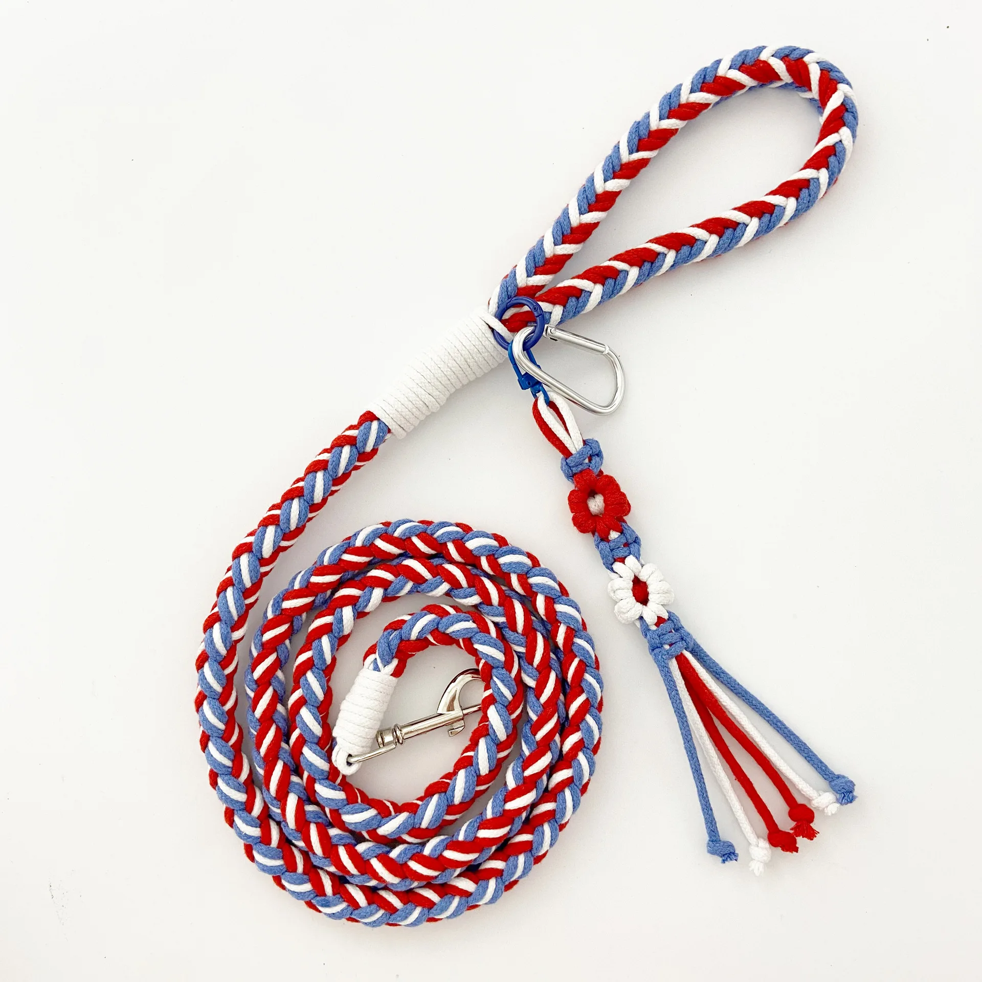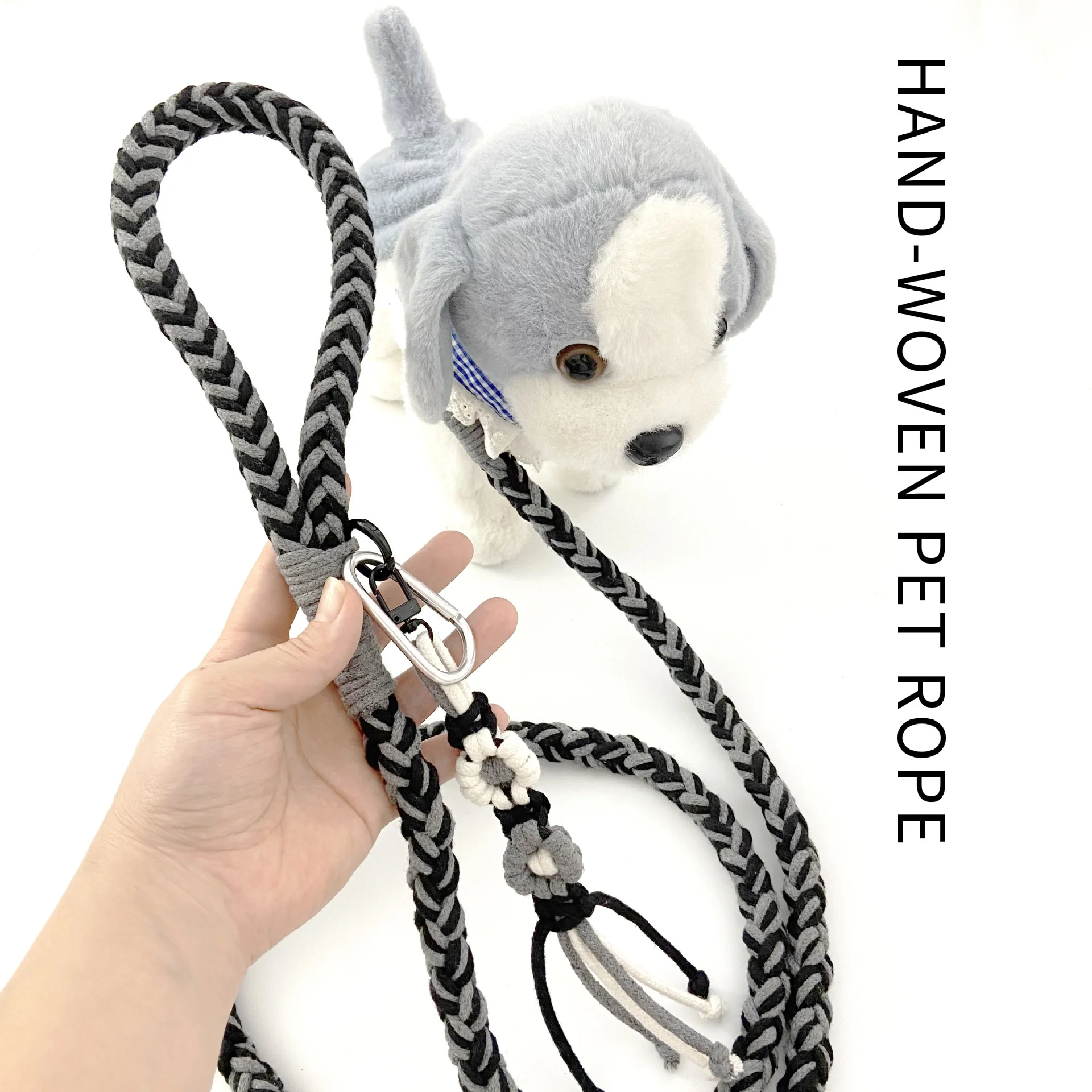 Correa trenzada hecha a mano para perro de 5 pies, diseño Floral, correas para mascotas, cuerda de algodón para caminar y entrenar, cuerda de tracción tejida a mano para mascotas