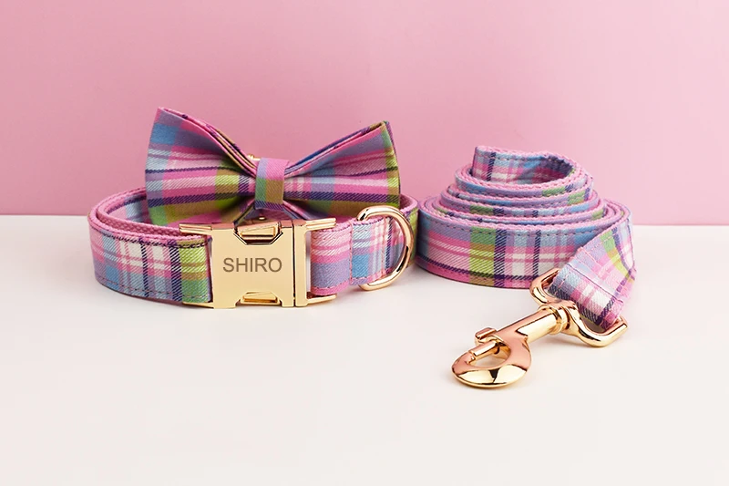 Correa para mascotas Cuerda Correa para perros de color sólido, Collar personalizado para perros, conjunto de correa para arnés, Collar para perros de terciopelo personalizado con linda pajarita