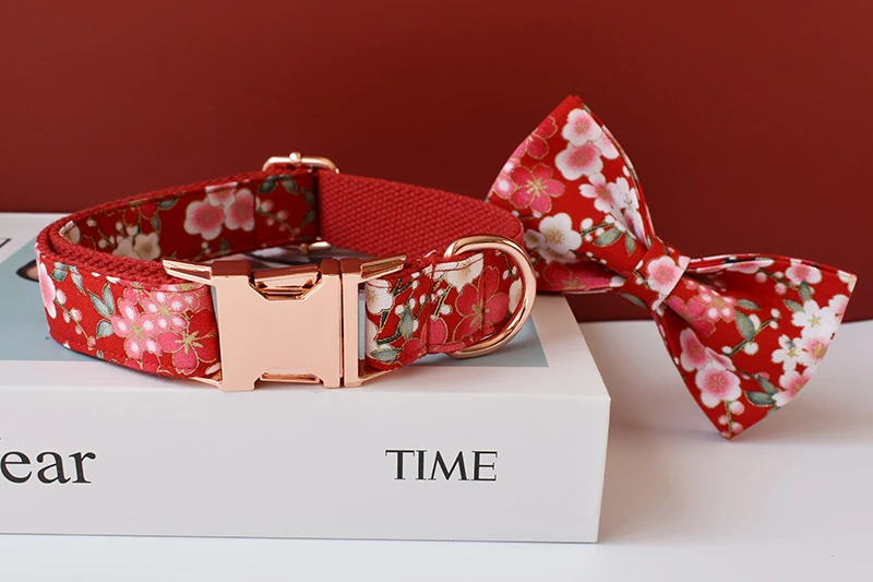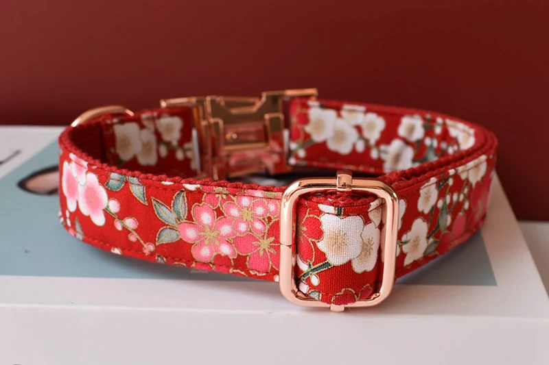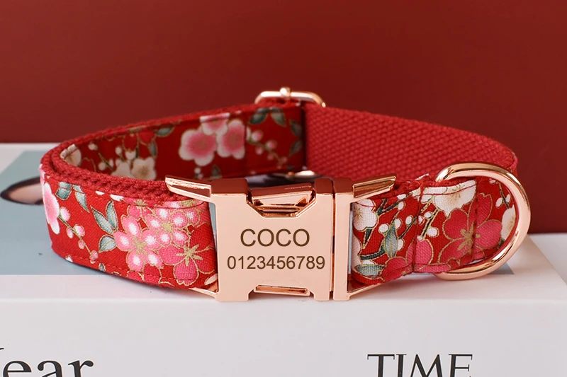 Conjunto de Correa y Collar para perros excepcionalmente elegante y ajustable en diferentes longitudes perfecto para perros medianos a grandes nombre grabado flores 02