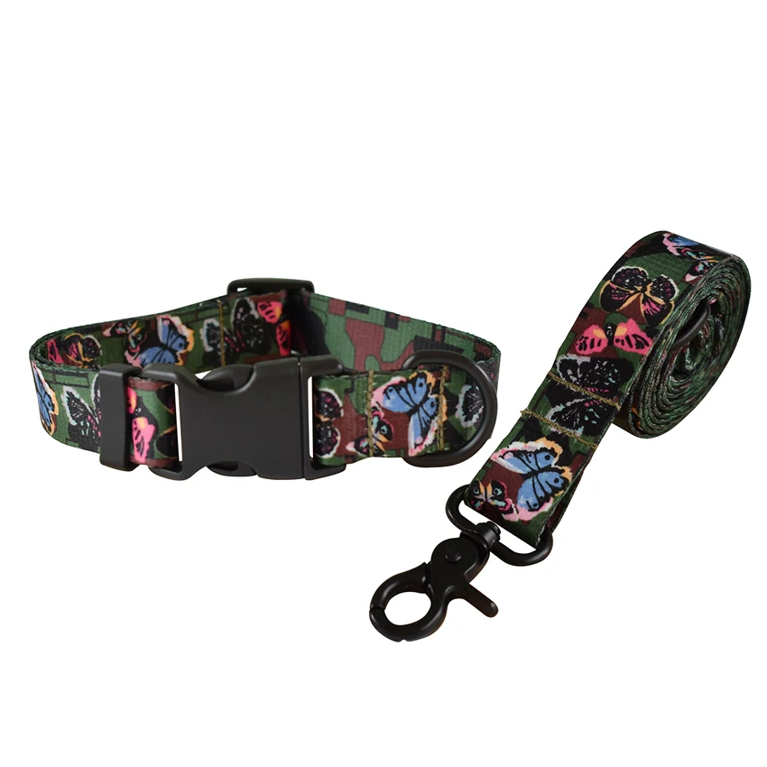 Hebilla de liberación de plástico correa de perro y Collar conjunto de Nylon impreso Collar para mascotas suministros al por menor moda hecha a mano Bulldog Francés