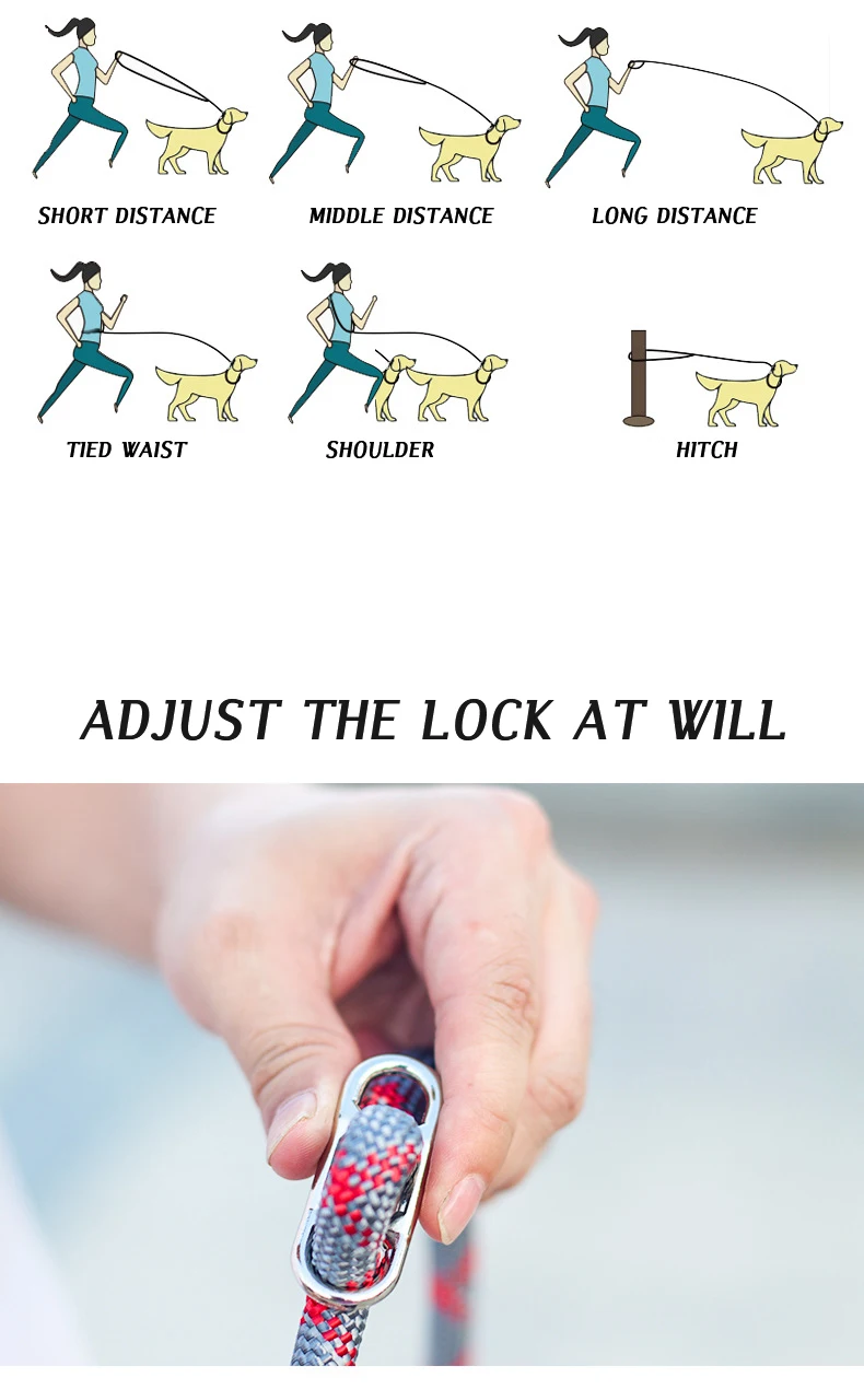 Correas dobles de nailon reflectante para mascotas, cuerda de tracción para correr, manos libres, cadena para perros pequeños y grandes