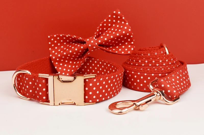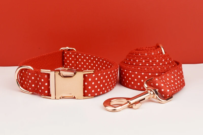 Punto rojoJuego de collar y correa para perros Placa de identificación grabada personalizada Suministros para mascotas Correa para perros Zzkdot 01