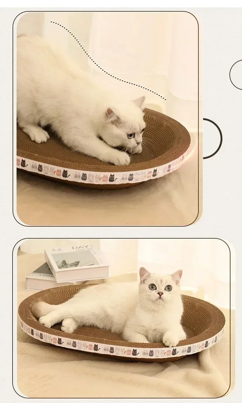 🐾 Material irresistible e seguro para mascotas:Hecho de papel corrugado preferido que es lo suficientemente resistente como para rascarse vigorosamente pero suave con las patas de su gato.La textura es naturalmente atractiva para los gatos y es completamente segura, lo que garantiza que no dañará su piel ni sus garras.