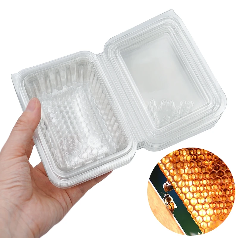 Cortador de miel de abeja para apicultura, peine de abeja de acero inoxidable, corte de miel con herramienta de mango de madera y caja cuadrada de panal de 10 piezas
