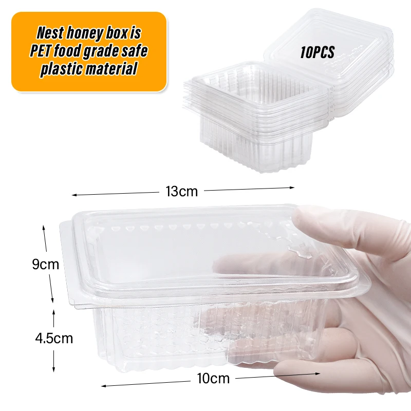 Paquete 3: 1 cortador de miel + caja cuadrada de panal de plástico de 10 piezas