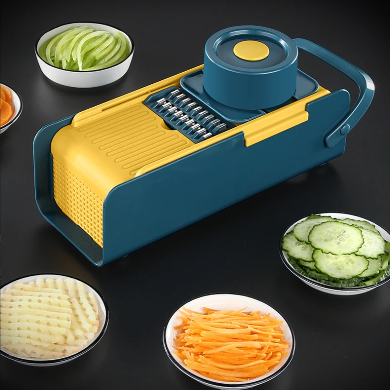 Cortador de verduras multifuncional, trituradoras con cesta, cortador de patatas y frutas, rallador de zanahoria, herramientas de mandolina, 5 cuchillas
